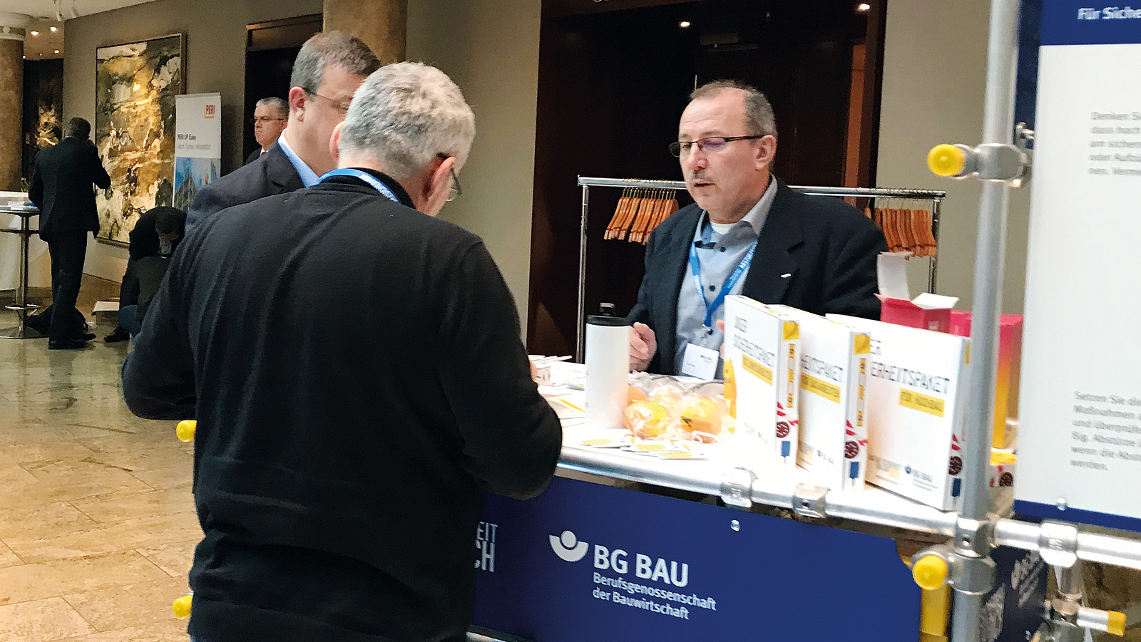 Veranstaltet wurde der Kongress vom Bauverlag. Neben dem Vortragsprogramm mit anschließender Diskussionsrunde gab es einen Ausstellungsbereich, in dem Hersteller ihre aktuellen Lösungen zur Absturzsicherheit präsentieren konnten und in dem auch die BG BAU zahlreiche Präventionsangebote an einem Stand vorstellte. Durch das Vortragsprogramm führten Burkhard Fröhlich, ehemaliger Chefredakteur der Deutschen Bauzeitschrift, und Eugen Schmitz, der Chefredakteur der THIS – beide Medien sind Produkte des Bauverlags. „Obwohl das Interesse am Thema Absturzsicherung wächst, zeigen die Unfallzahlen dennoch, dass weiterhin Aufklärungsarbeit nötig ist“, eröffneten sie die Veranstaltung am ersten Kongresstag.
