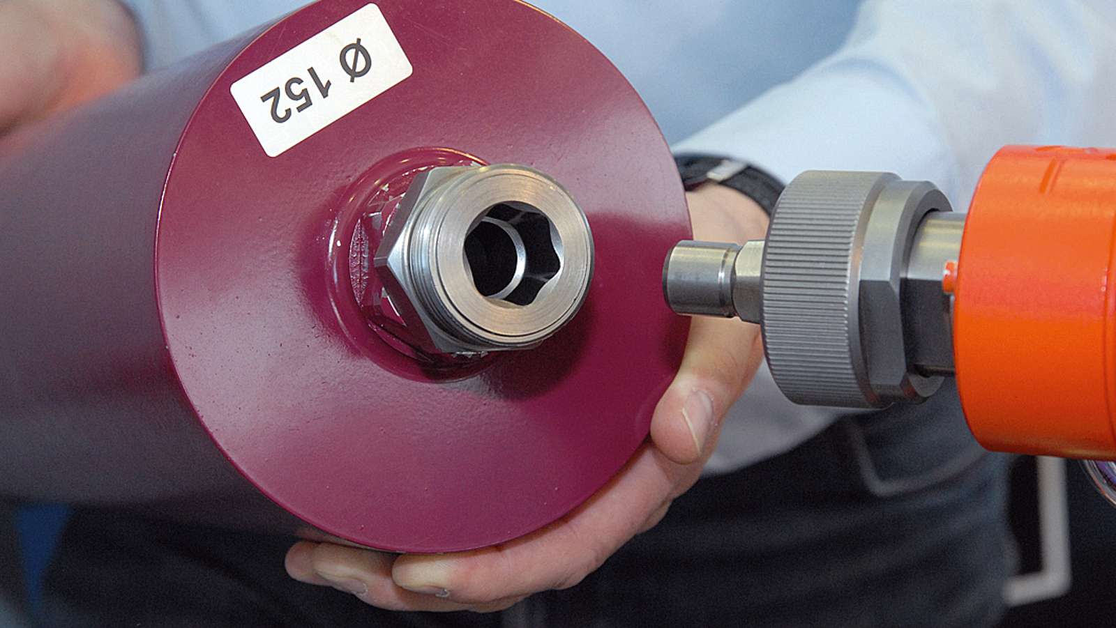 Der werkzeuglose Bohrkronenanschluss ermöglicht ein leichtes Lösen der Bohrkrone per Hand ohne technische Hilfsmittel. Beim waagerechten Arbeiten kann die Bohrkrone auf der Spindel der Maschine aufgelegt werden, sodass beide Hände frei sind, um die Mutter zu schließen. „Aufgrund der ergonomisch vorteilhaften Handhabung bei der Montage und Demontage werden sowohl der Anwender als auch die Maschine geschont“, erklärt Michael Huber, stellvertretender Vorstandsvorsitzender des Fachverbands. „Im Ergebnis sinkt die Verletzungsgefahr für die Mitarbeiter, da ‚festgefahrene Bohrkronen‘ bei Nutzung des neuen Systems der Vergangenheit angehören.“ Darüber hinaus überzeugt der Anschluss durch eine kurze Bauweise und geringes Gewicht sowie eine hohe Rundlaufpräzision – die anfallenden hohen Drehmomente werden spiel- und vibrationsfrei übertragen. Zudem ist dank der fehlenden Vertiefung, wie bei einem Gewinde, auch eine einfache Reinigung möglich.