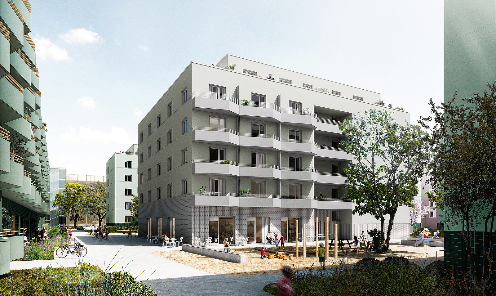 An die Stelle einer temporären Flüchtlingsunterkunft Ecke Kastanienallee rückt zudem ein Gebäude mit 41 Wohnungen für rund 250 geflüchtete Menschen. Die Modulbauweise ermöglicht später eine flexible Nachnutzung.
