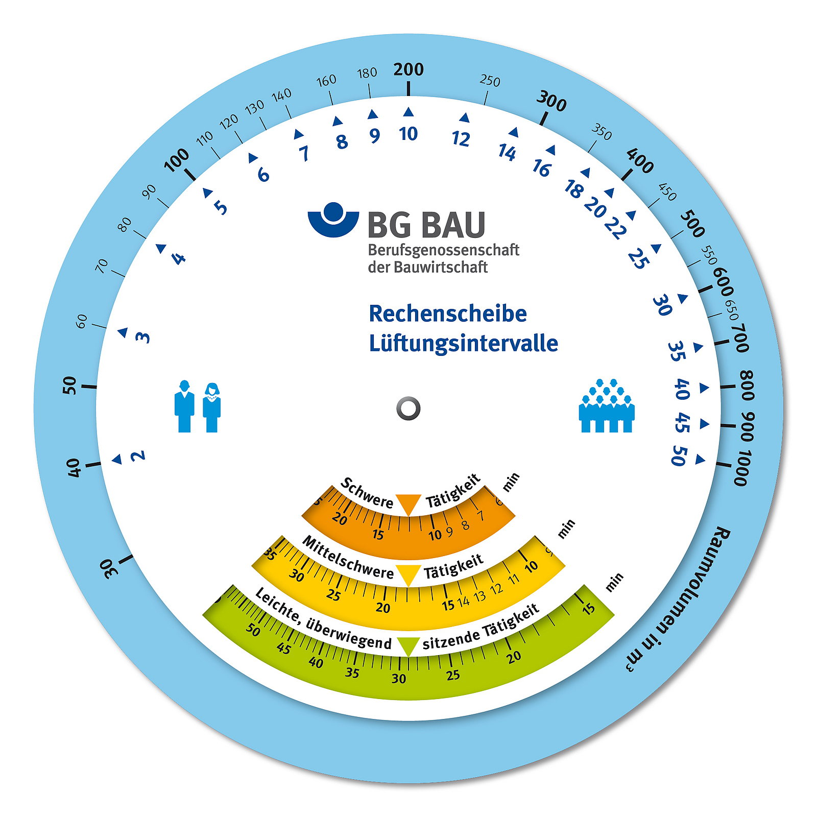 Die Rechenscheibe kann unter www.bgbau.de/lueftungsrechner digital genutzt und auch zur haptischen Nutzung im Mediencenter der BG BAU bestellt werden.