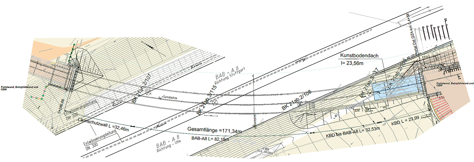 Lageplan GZA-BAB-Tunnel (Projekt "Unterfahrung der A8 mittels Lockergesteinsvortrieb")