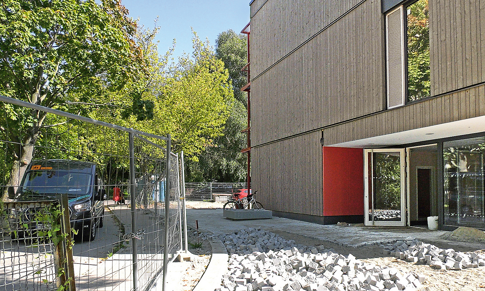 So geschützt, wie die Baustellen jetzt sind, werden bei Übergabe natürlich auch alle Frei- und Spielflächen um die Gebäude herum sein. Etwa zwei Meter hohe Zäune, sogenannte Einfriedungen, sorgen für den entsprechenden Schutz. Grundlage für die Gestaltung sind die DGUV Vorschrift 82 „Unfallverhütungsvorschrift Kindertageseinrichtungen“ und die DGUV Regel 102-602 „Branche Kindertageseinrichtung“. So sind beispielsweise Türen derart beschaffen, dass sie ein unerlaubtes Verlassen oder Betreten des Geländes verhindern.