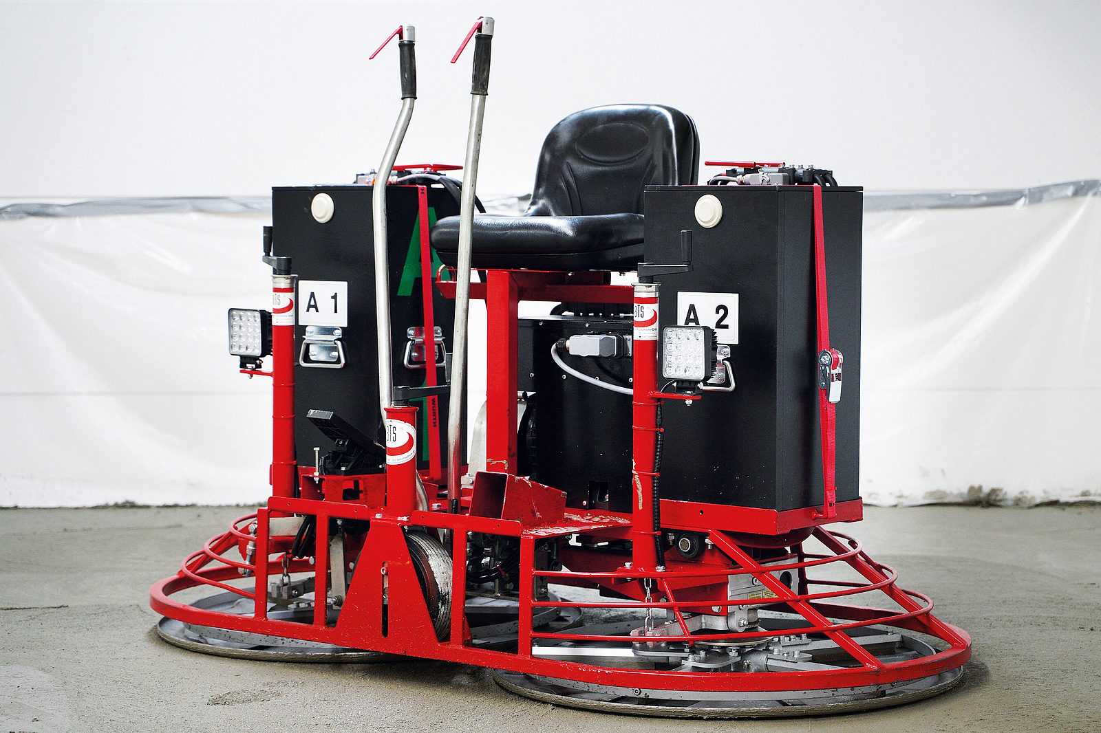 Wie die herkömmlichen Doppelglätter bietet auch die akkubetriebene Variante eine Zweihebelsteuerung, die eine sicheres und exaktes Steuern der Maschine erlaubt. Dank des Gaspedals kann die Drehzahl stufenlos geändert werden. Da der Akku-Doppelglätter vom Unterbau her identisch zum benzinbetriebenen Glätter ist, können mechanische Wartung und Reparatur – wie gewohnt – selbst durchführt werden. Durch das integrierte Fahrwerk ist es einer Person möglich, die Maschine einfach und flexibel zu transportieren und die Glattflügel bzw. Glättteller zu wechseln.