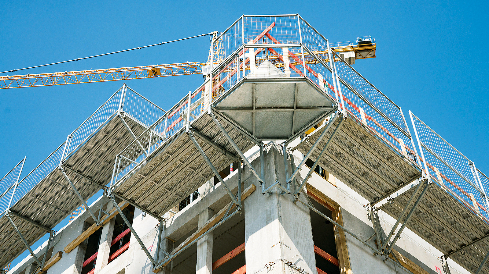 Beim Hotelbau kommt das Falko-Konsolgerüst zum Einsatz, das ein Fassadengerüst ersetzt.
