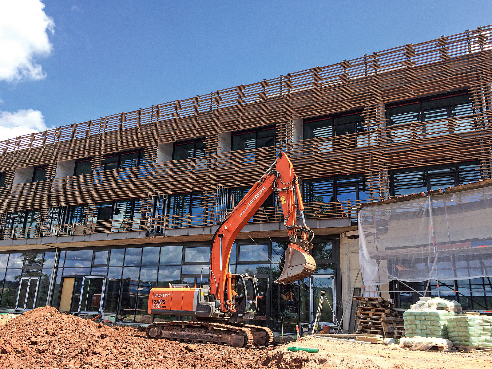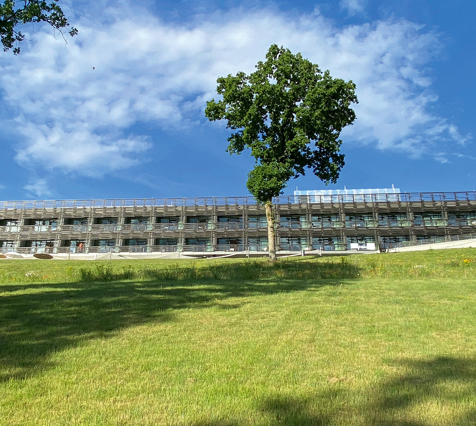 Erstmals wurde bei einem Hochbauprojekt das Konzept der gebundenen Systembauweise aus dem Garten- und Landschaftsbau angewandt.