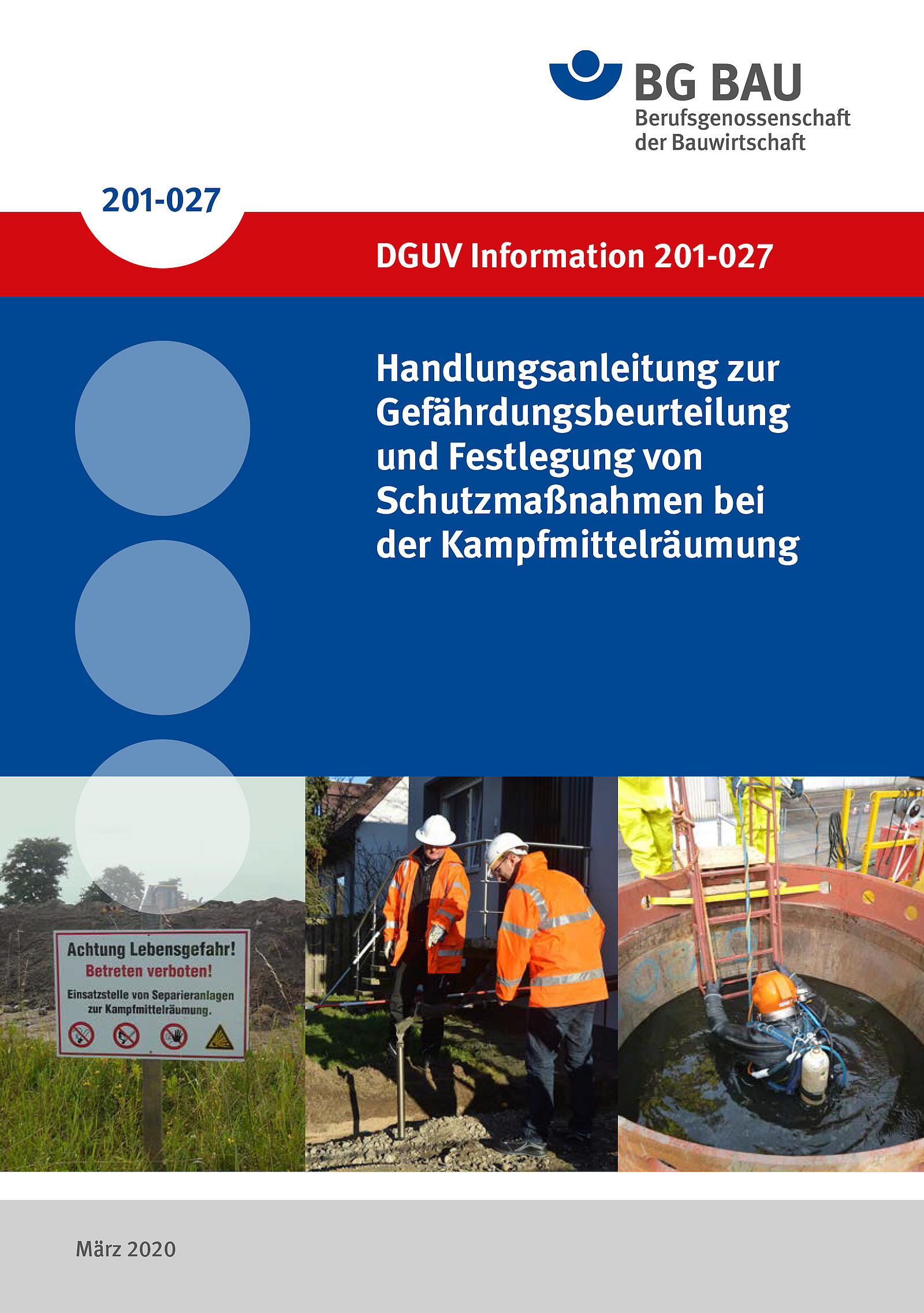 Die für die Kampfmittelräumung einschlägige DGUV Information 201-027 hilft sowohl dem Kampfmittelräumunternehmen als auch dem Bauherrn bzw. dessen Planer, die allgemeinen Grundsätze nach § 4 ArbSchG bei der Planung und Ausführung des Bauvorhabens auf kampfmittelverdächtigem Untergrund zu berücksichtigen und umzusetzen.