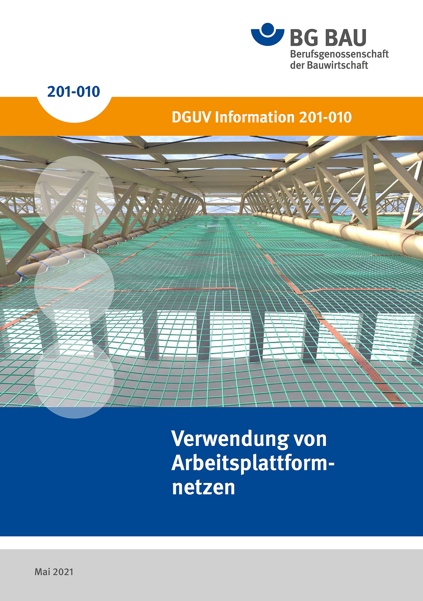 Arbeitsplattformnetze bestehen aus Schutznetzen mit einer Maschenweite von max. 45 x 45 mm2 und zusätzlich eingefädelten Traversengurten1 mit einem Durchstich nach maximal zehn Maschen. Die Arbeitsplattformnetze werden mit Anschlaggurten in den Randbereichen an der Tragkonstruktion des Bauwerks im Abstand von 50 cm befestigt und können dann – anders als Schutznetze2 – als Arbeitsplätze und Verkehrswege verwendet werden und abstürzende Personen auffangen.
