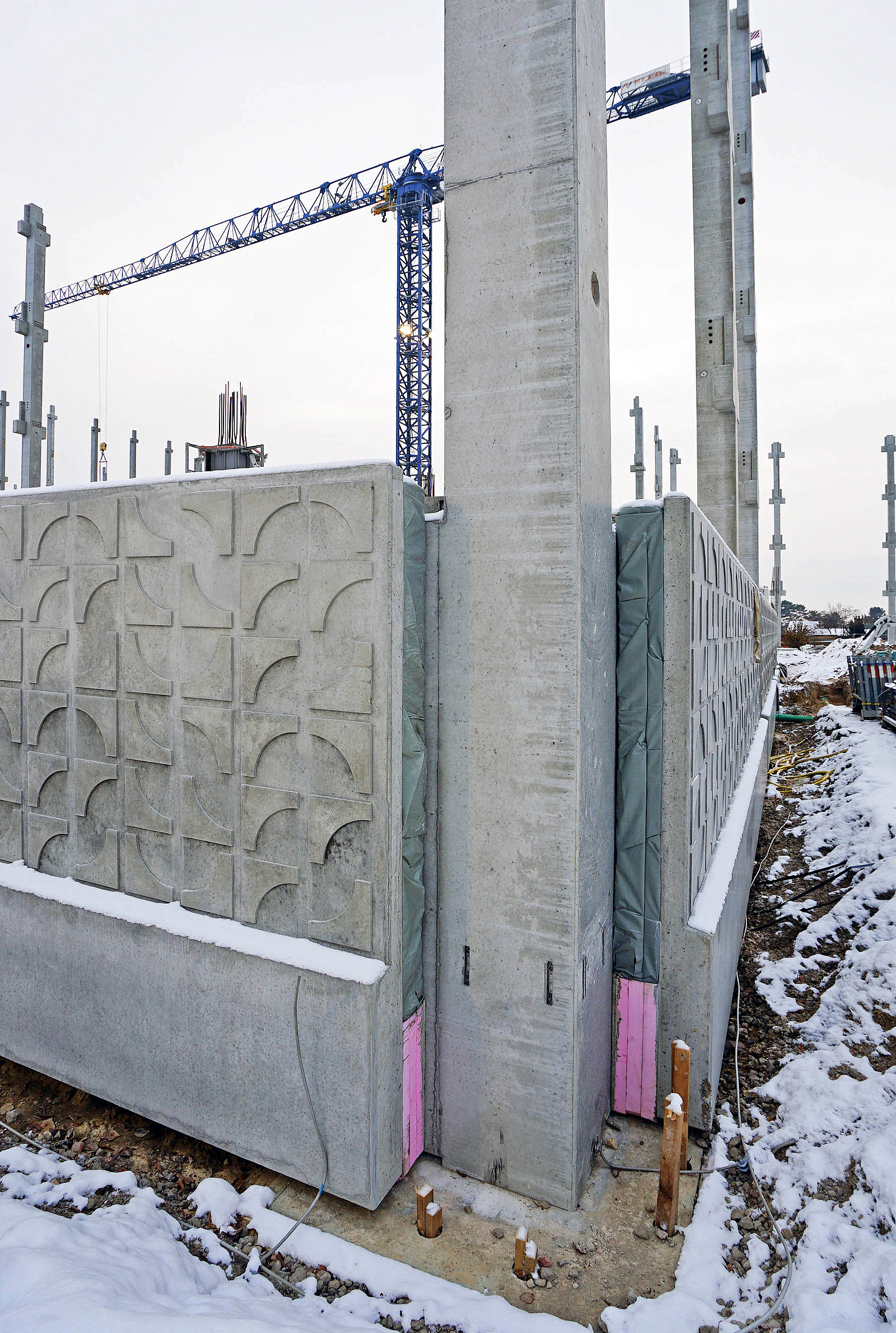 Der modulare Aufbau mit einem hohen Anteil gleicher, vorgefertigter Stützen, Wand- und Deckenelemente oder Treppen verkürzt die Bauzeit dafür erheblich. Denn parallel zur Produktion der Elemente im Werk können auf der Baustelle bereits die Fundamente oder die teilweise Unterkellerung für Heizungstechnik und Archive hergestellt werden. Jederzeit wären auch später An- oder Aufbauten unkompliziert machbar.