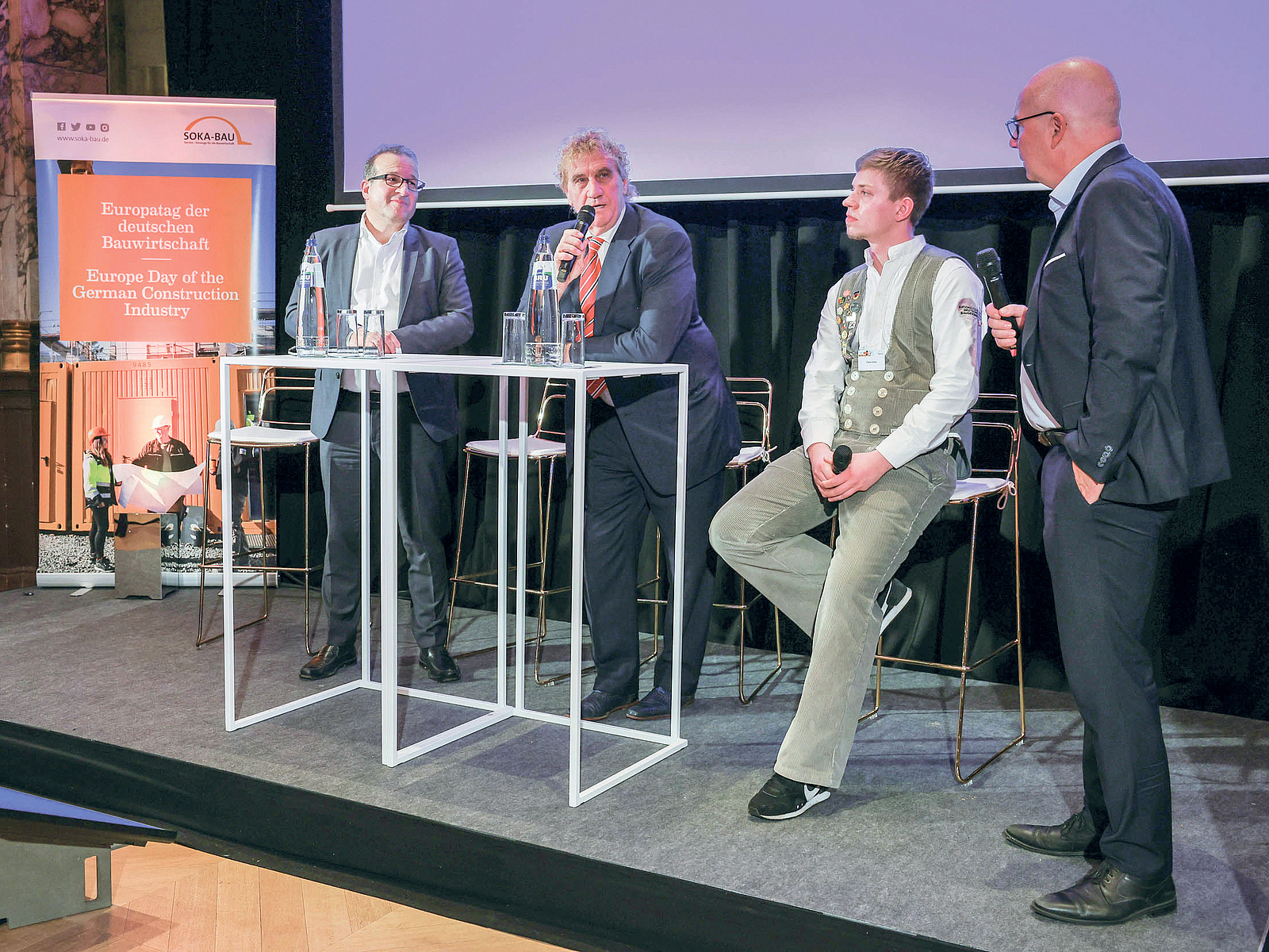 Um Spitzenleistungen ging es auch im Gespräch mit Pierre Holze. Der junge Berliner hat Ende 2022 bei den World Skills, der Weltmeisterschaft der Berufe, den Sieg unter den Maurern davongetragen. Holze, der auch am wieder erbauten Stadtschloss in Berlin und über das Programm Erasmus plus im italienischen Mantua gearbeitet hat, berichtete von den Vorbereitungen und dem umfangreichen Training, die schließlich zu seinem Erfolg führten. Der Erwerb des Meistertitels in seinem Beruf sei nun das nächste Ziel, verriet er.