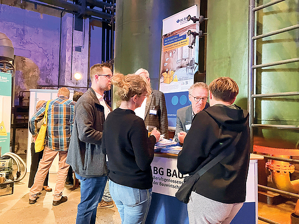 Die BG BAU war auch mit einem Info-Stand vertreten und informierte dort über aktuelle Lösungen zum staubarmen Arbeiten sowie über die Fördermöglichkeiten bei der Anschaffung, die sie ihren Mitgliedsbetrieben bietet. Darüber hinaus gab es am Stand auch Informationen zu Online-Fortbildungen zum Thema Staubvermeidung und Schulungen zu Grundkenntnissen für den Umgang mit Asbest nach TRGS 519.