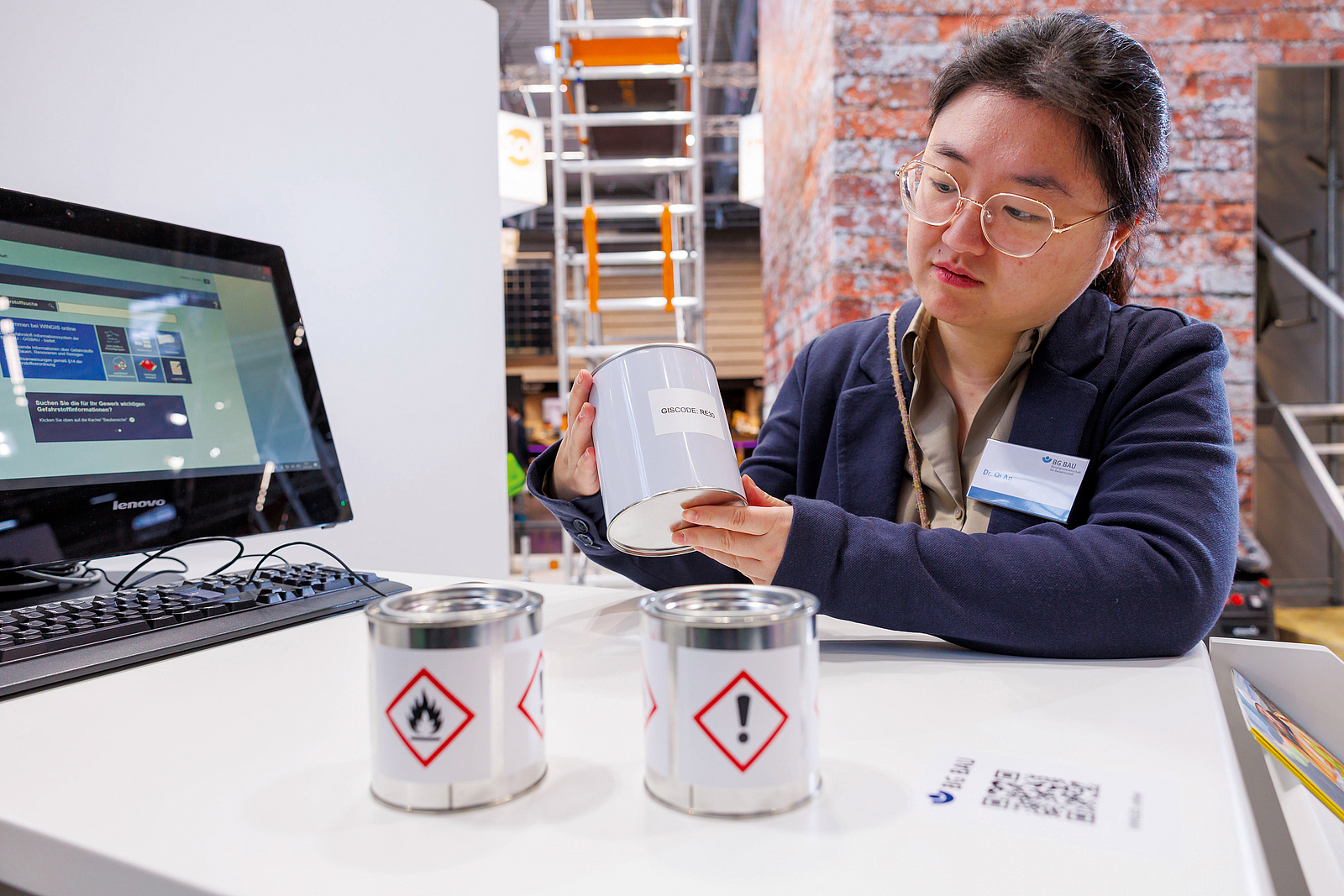 Unterstützung für den sicheren Umgang mit Gefahrstoffen, insbesondere beim Bauen im Bestand, bietet das Gefahrstoff-Informationssystem WINGIS der BG BAU/ GISBAU. Am Messestand wurden Interessierte Schritt für Schritt durch die Onlineversion des Systems geführt und zu geeigneten Schutzmaßnahmen beraten, z. B. zur Anschaffung eines gebläseunterstützten Helms, der Atemwege, Augen und Gesicht in einem schützt.