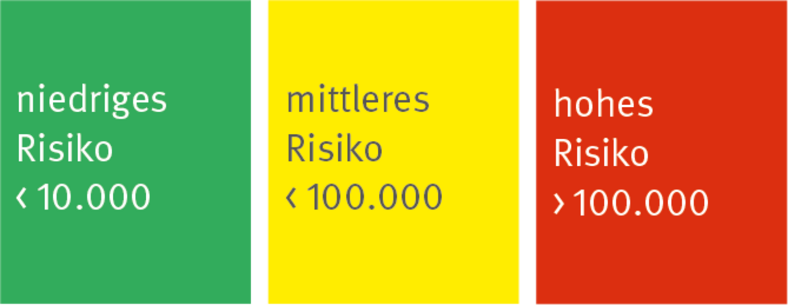 Das Konzept definiert drei Risikobereiche: hohes Risiko (Asbest-Faserstaubbelastung > 100.000 Fasern/m³), mittleres Risiko (Asbest-Faserstaubbelastung < 100.000 Fasern/m³) und niedriges Risiko (Asbest- Faserstaubbelastung < 10.000 Fasern/m³). Aufgrund der Farbgebung der Risikobereiche (rot, gelb, grün) wird das Maßnahmenkonzept auch „Ampel-Modell“ genannt. Mithilfe dieses Modells können Unternehmen für die Arbeit mit krebserzeugenden Gefahrstoffen die Schutzmaßnahmen risikobezogen festlegen. Je höher die Belastung am Arbeitsplatz ist, desto anspruchsvoller müssen die Maßnahmen zum Schutz der Beschäftigten sein.