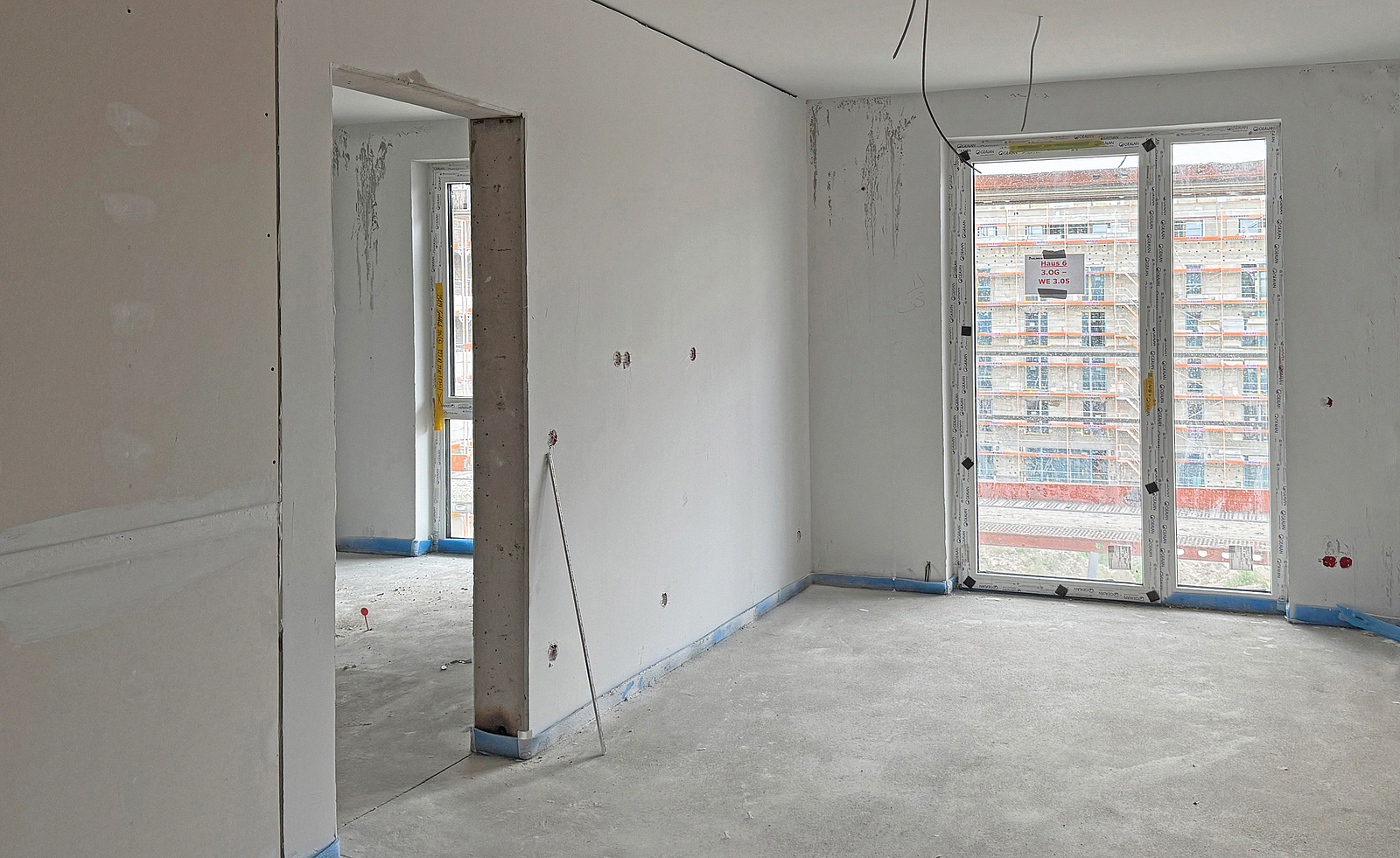 Auf dem Neuköllner Gelände werden 15 Wohngebäude mit 860 Ein- bis Dreizimmerwohnungen errichtet, davon 102 als geförderte Sozialwohnungen. Nur knapp zehn Monate dauerte es von der Grundsteinlegung bis zum Richtfest. Trotz des begrenzten Baufeldes bleibt noch Platz für eine Kita, einen Kinderspielplatz, ein Fitness- und Yogastudio, Kino, private Veranstaltungsbereiche sowie für Tischtennis, Padel, Basketball und Beach-Volleyball. Öffentliche Verkehrsmittel, Schulen und Ärzte befinden sich gleich in der Nähe. Keine monotone „Schlafstadt“ also, sondern ein Wohlfühlquartier mit allem Drum und Dran. Im Frühjahr 2026 soll diese Ministadt in der Großstadt samt Grünanlagen bezugsfertig sein.