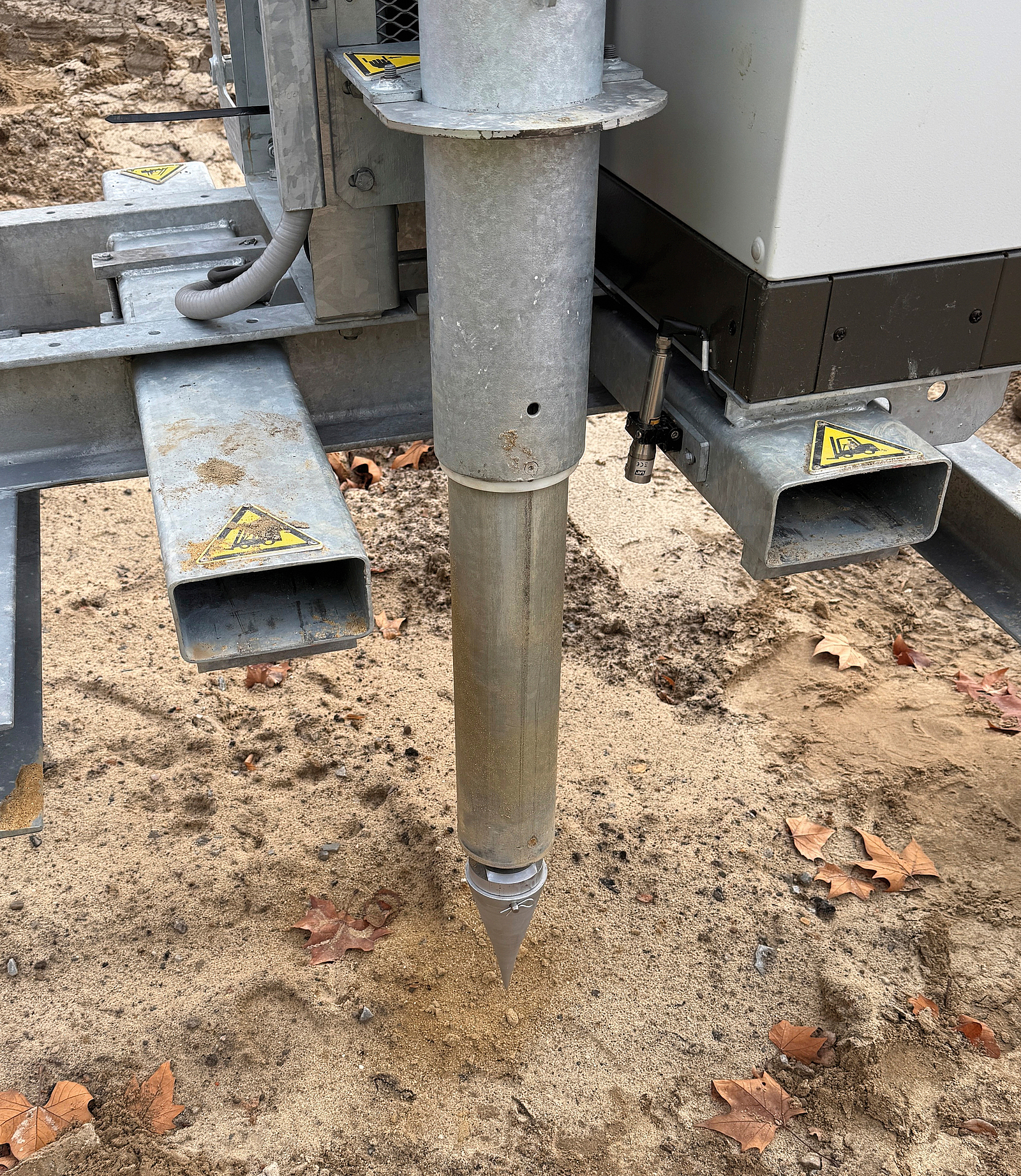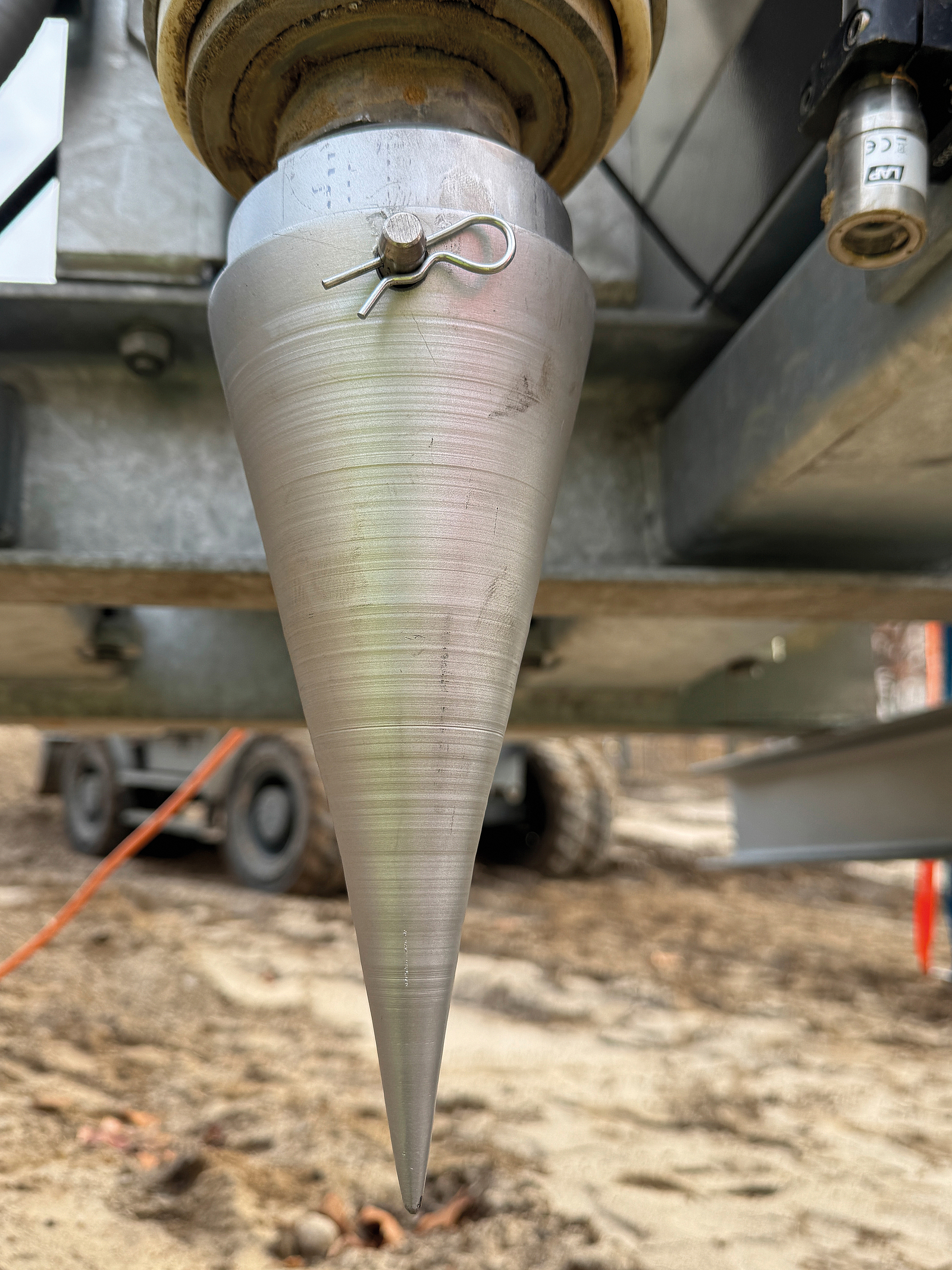 Anschließend wird das Loch mit dem Stahl-Stopfkolben der Maschine verdichtet. Über die Steuerung der Maschine wurden alle Daten wie Verfülltiefe, Lagenstärke oder Anpressdruck zur lagenweisen Verfüllung digital dokumentiert.