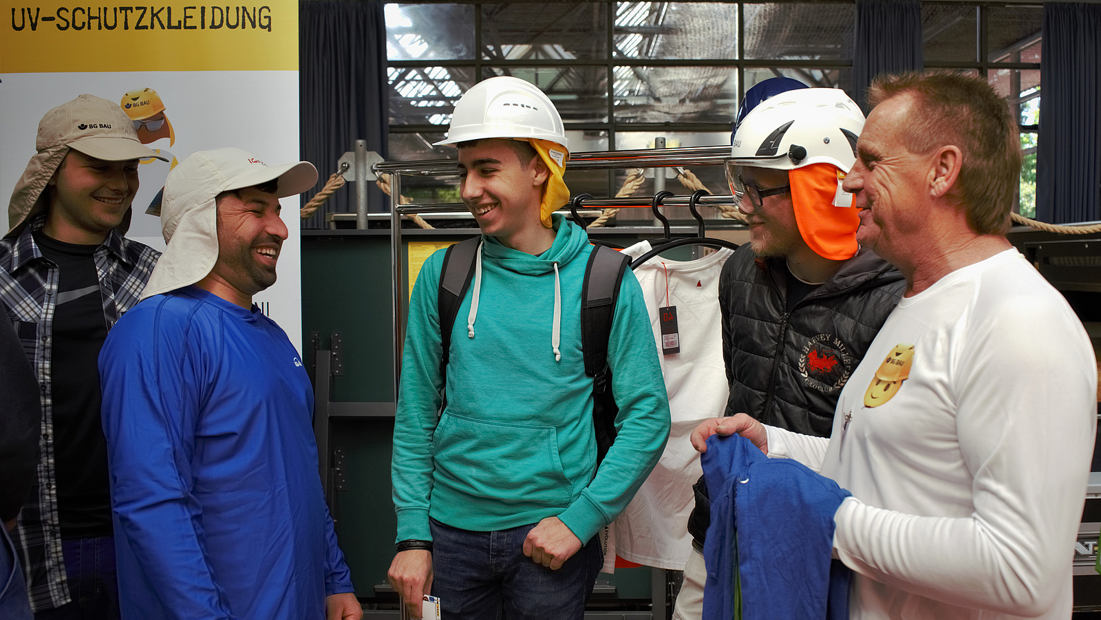 Die BG BAU hat UV-Aktions- bzw. Informationstage in Ausbildungszentren für Bauberufe entwickelt, die seit 2017 erfolgreich durchgeführt werden. Hier werden junge Menschen für das Thema UV-Schutz sensibilisiert und über die Auswirkungen von UV-Strahlung auf den Körper aufgeklärt. Die Erfahrung zeigt, dass die Auszubildenden viele „Aha-Effekte“ haben und sich vornehmen, sich in Zukunft besser zu schützen.