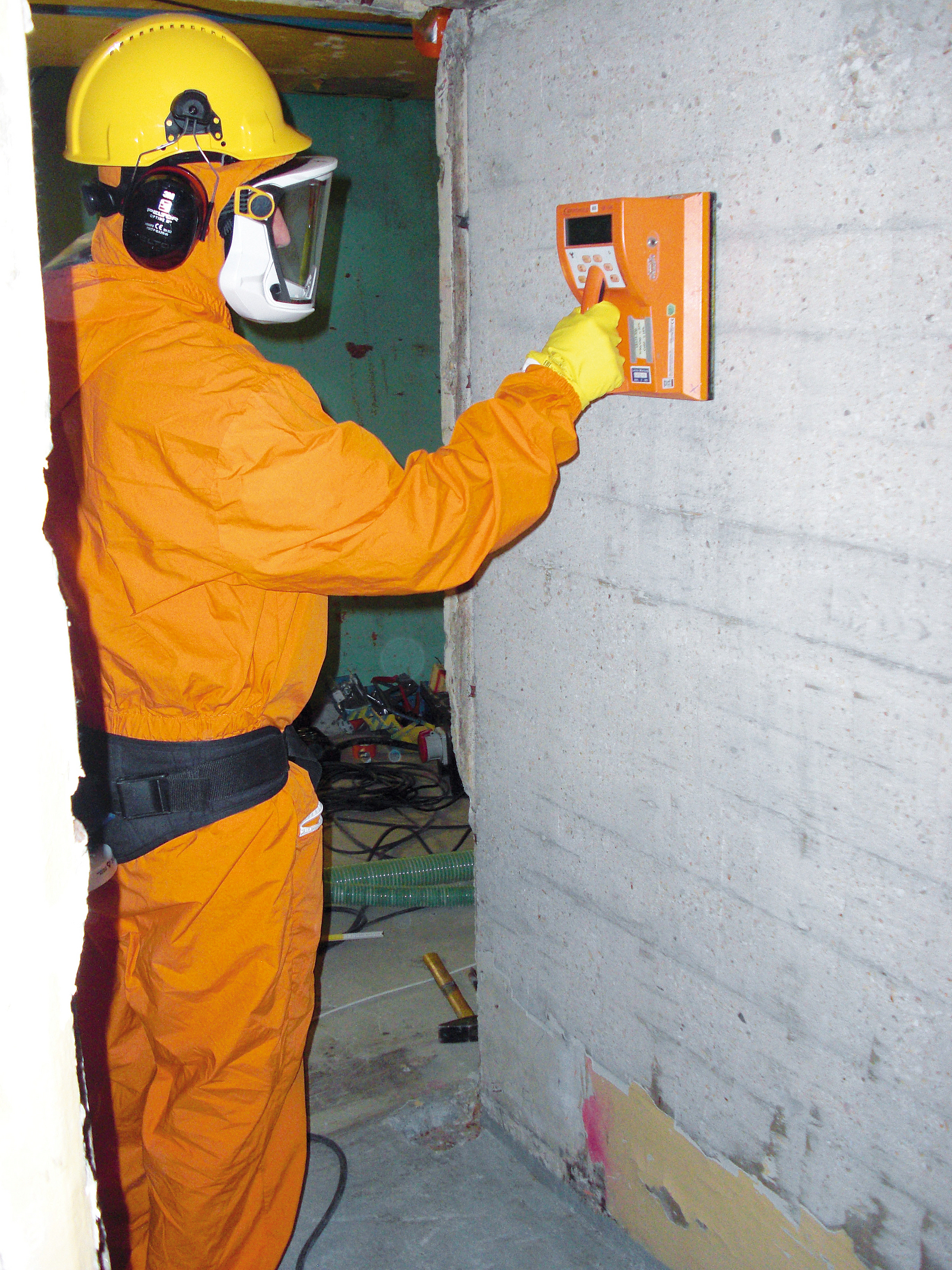 Im Falle der versteckten bzw. unbekannten Kontaminationsherde musste präventiv agiert werden. Die PSA wurde dauerhaft an den Fall einer luftgetragenen Kontamination angepasst. Alle Arbeiten wurden unter Vollschutz – das heißt gebläseunterstützter Atemschutz, zwei Paar Schutzoveralls, zwei bis drei Paar Handschuh und Sicherheitsschuhe mit zwei Paar Schuhüberziehern – ausgeführt. In Bereichen mit höheren Kontaminationsbefunden kamen noch fremdbelüftete Atemschutzanzüge dazu. Beim Ausschleusen aus dem Kontrollbereich wurden die Schutzschichten in den einzelnen Schleusenbereichen entfernt. Nach Ablegen der Schichten wurden die Arbeiter in Ganzkörperkontaminationsmonitoren auf radioaktive Anhaftungen überprüft und konnten erst dann den Kontrollbereich verlassen. Zwischen den Fräsgeräten und dem Zyklonabscheider wurde eine Unterdruckbox geschaltet. Bei einem Saugverlust hat diese direkt die Stromzufuhr zum Trägergerät unterbrochen und somit eine Aerosolbildung verhindert.