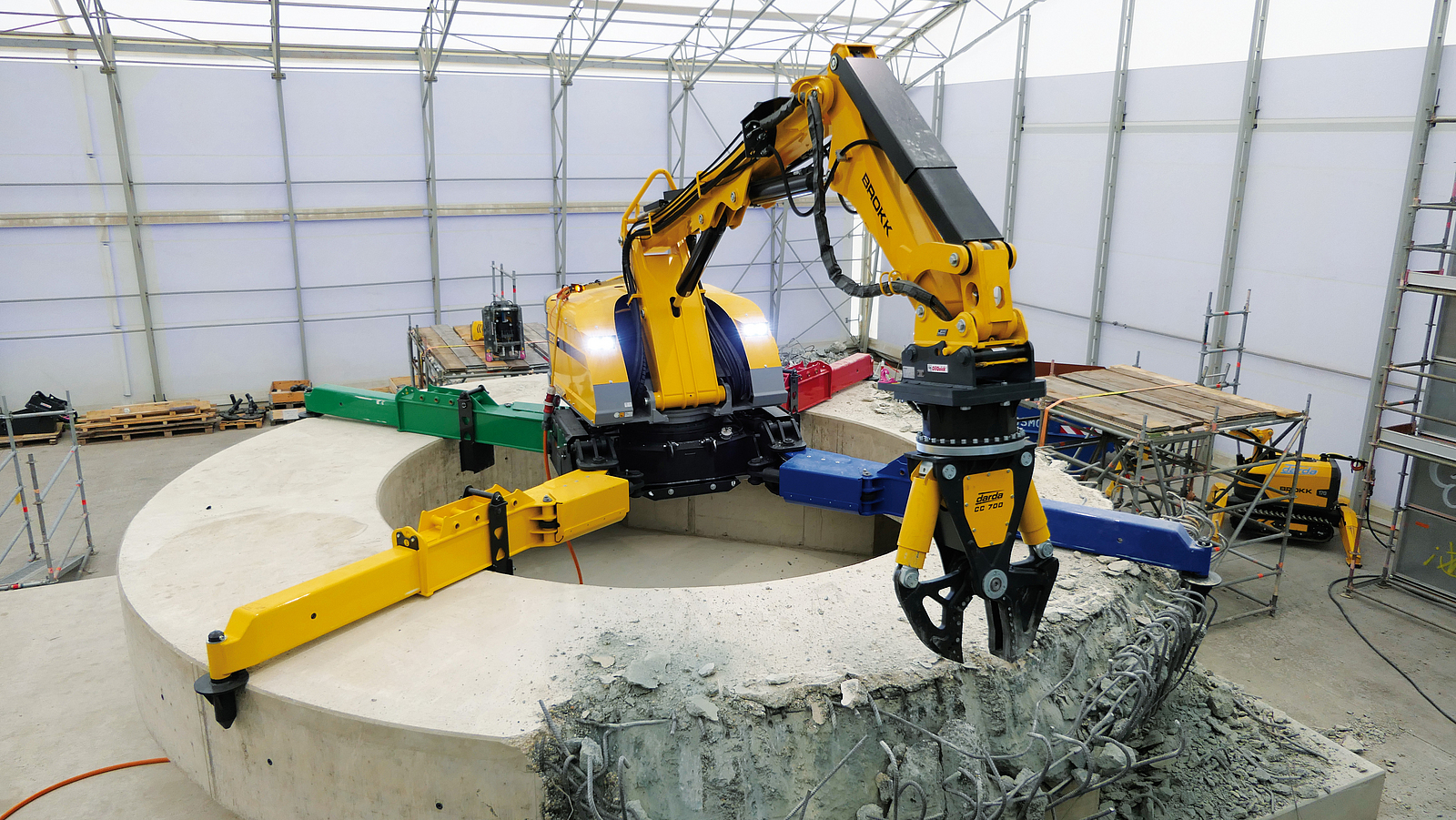 Nach der erfolgten Oberflächendekontamination und vor dem Abbruch der Betonstrukturen durch den Abbruchroboter werden alle zugänglichen Flächen gemessen. Sollten die Messungen ergeben, dass die Fläche potenziell freigabefähig ist, kann der Abbruch des entsprechenden Bereichs mit dem Ziel der späteren Freigabe erfolgen. Sofern Bereiche jedoch noch Kontaminationen aufweisen, die einer Freigabe des anfallenden Materials entgegenstehen, sind diese Bereiche mit dem Spinnenbagger so lange zu bearbeiten, bis der verbliebene Bereich der Freigabe zugeführt werden kann. Sofern die Kontamination zu hoch ist, kann auch ein ganzer Bereich als nicht freigabefähig eingestuft werden.
