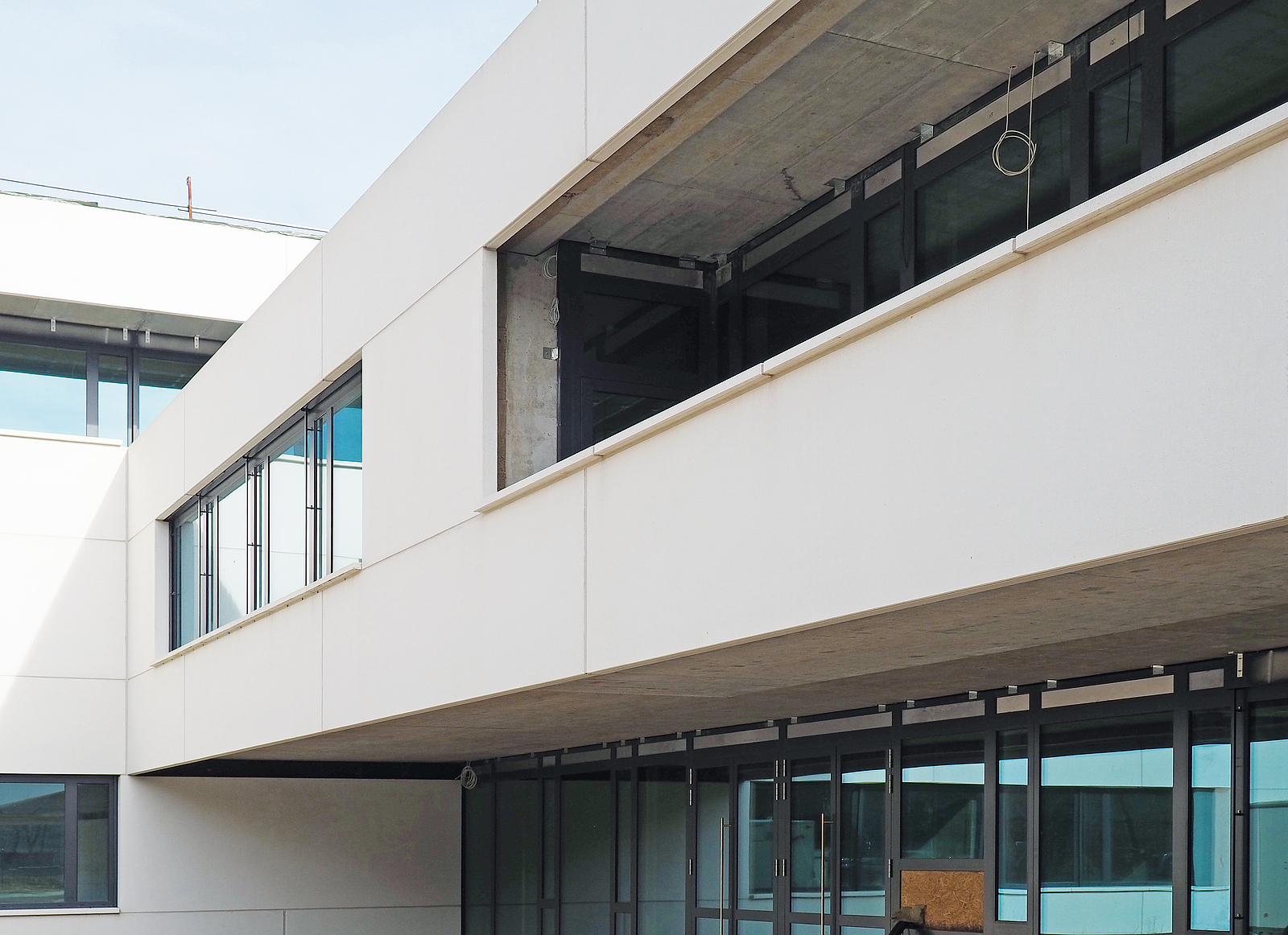 Markante Fensterausschnitte sowie Gebäude-Ein- und Unterschnitte charakterisieren den Neubau.