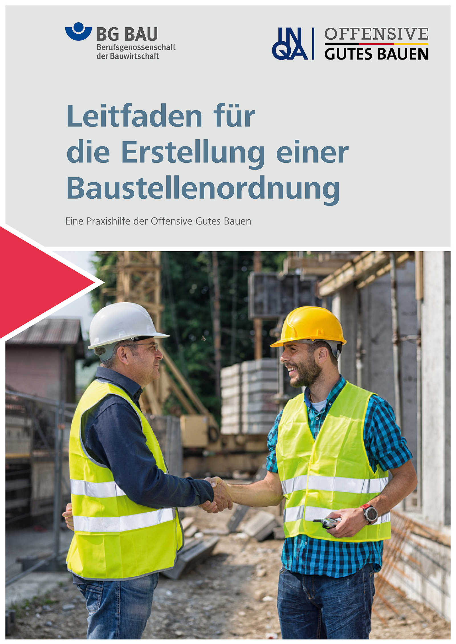 Im März 2021 wurde der überarbeitete „Leitfaden für die Erstellung einer Baustellenordnung“ veröffentlicht. Die Baustellenordnung ist ein Informationsmittel von Bauherrinnen und Bauherren und macht wichtige Regelungen und Informationen einem breiten Adressatenkreis auf der Baustelle zugänglich. Unternehmen und deren Beschäftigte sowie weitere Beteiligte werden kompakt über die Regelungen zum Verhalten und zur Zusammenarbeit auf der Baustelle informiert. Der Leitfaden unterstützt alle, die Baustellenordnungen erstellen, beim Erarbeiten baustellenbezogener Lösungen. Für die jeweilige Baustelle können so die relevanten Themen zusammengestellt und geeignete Regelungen geplant und abgestimmt werden.