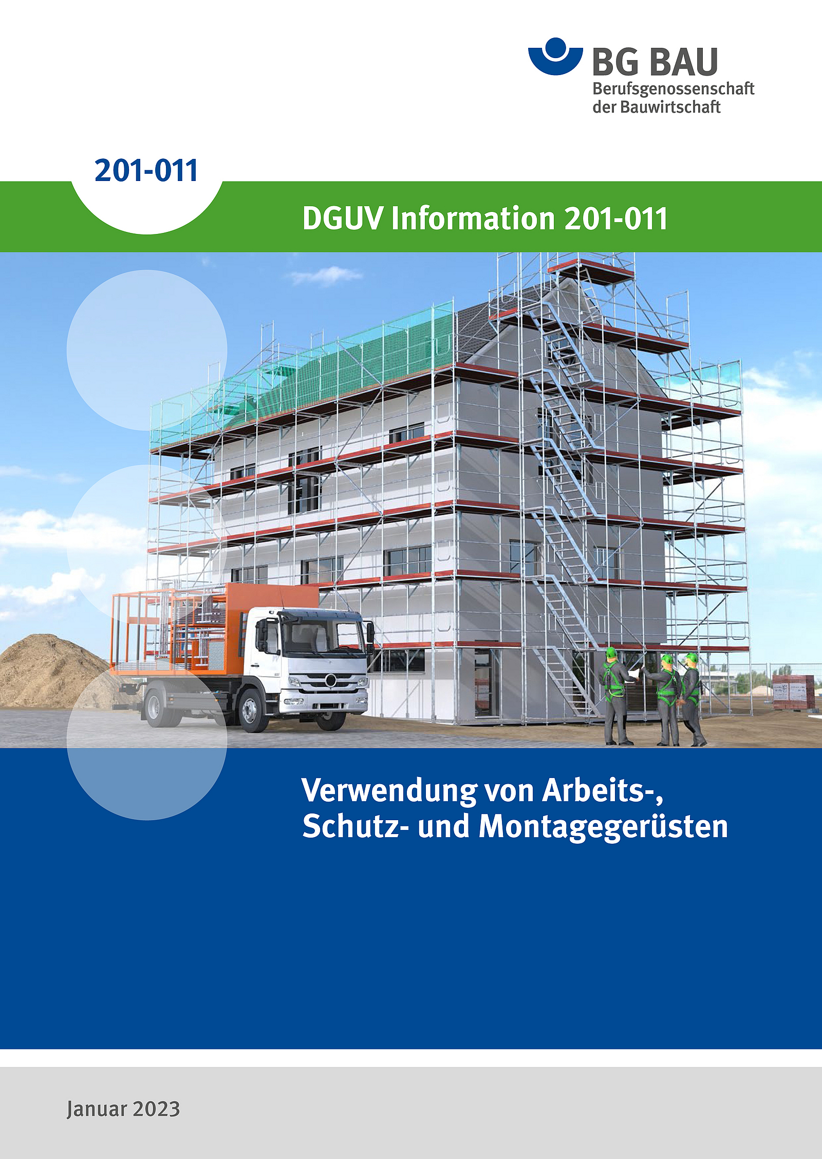 Die vollständig überarbeitete DGUV Information 201-011 mit dem neuen Titel „Arbeits-, Schutz- und Montagegerüste“ steht seit Januar 2023 zur Verfügung. Sie ist das neue Standardwerk für Baustellen, in dem alle am Bau beteiligten Akteure hilfreiche Informationen und praxisorientierte Hinweise zum Thema Arbeits- und Schutzgerüste – sowie jetzt auch Montagegerüste – finden. Bewährte Inhalte wurden aus der alten Fassung übernommen oder an heutige Standards angepasst. Zudem sind die wesentlichen Inhalte und Regelungen aus den staatlichen Vorschriften und den Regelwerken der Unfallversicherungsträger aufgenommen worden, um vollumfänglich die sichere Verwendung von Gerüsten darzustellen.