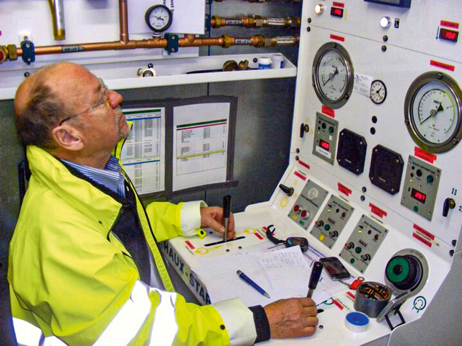 Beginn einer Druckkammerbehandlung, Steuerung des Druckverlaufs am Bedienstand der Druckkammeranlage