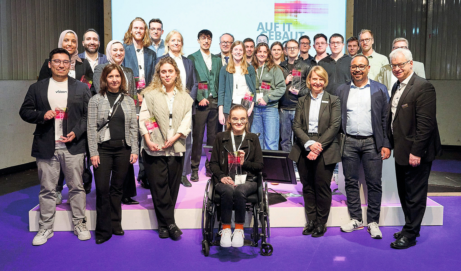 Seit 2002 werden im Rahmen des Wettbewerbs „Auf IT gebaut – Bauberufe mit Zukunft“ digitale Lösungen junger Bautalente ausgezeichnet – von der Digitalisierung einzelner Prozesse, Einsatz von KI auf Baustellen bis zu Lösungen für eine nachhaltige Transformation der Branche.