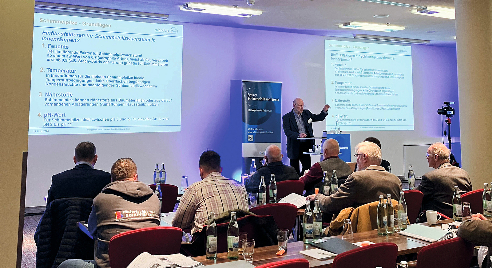 Die 13. Berliner Schimmelpilzkonferenz am 14. März 2024 im Mövenpick Hotel Berlin zeigte erneut mit unterschiedlichen Vorträgen die Bandbreite des Themas Schimmelpilz – von der Bestimmung und Erprobung von Schimmelschäden, über Möglichkeiten der Schimmelprävention bis zu rechtlichen Aspekten bei der Schimmelsanierung.