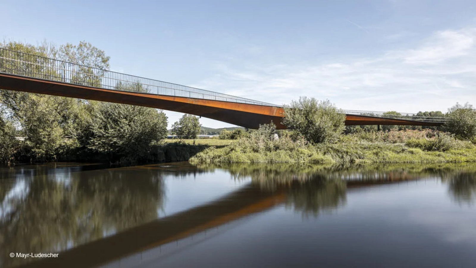 Der Materialeinsatz bei der Regenbrücke Roding erfolgte sehr effizient mit langlebigen Baustoffen. Der Cortenstahl bringt seinen Korrosionsschutz selbst mit – und geht mit vollständiger Rückbaubarkeit sowie Recyclingfähigkeit bei sortenreiner Trennung einher.