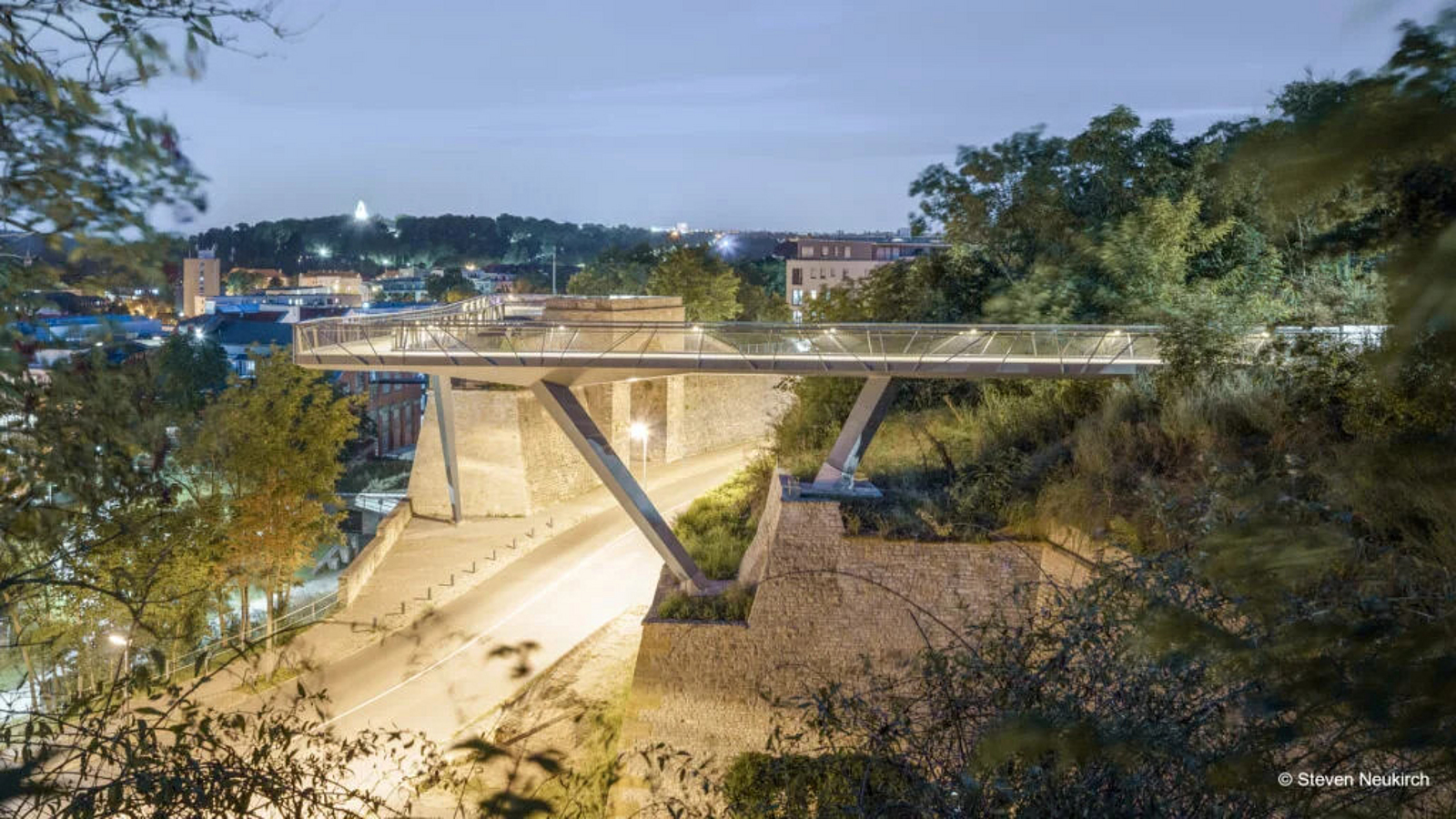 Der Bastionskronenpfad ist eine Fußgängerbrücke auf der Zitadelle Petersberg in Erfurt und verbindet in 13,5 m Höhe die Bastionen Kilian und Martin. Im historischen Umfeld mussten die Ingenieure die feine Balance zwischen hoher Funktionalität und technischer Machbarkeit maximal herausarbeiten.