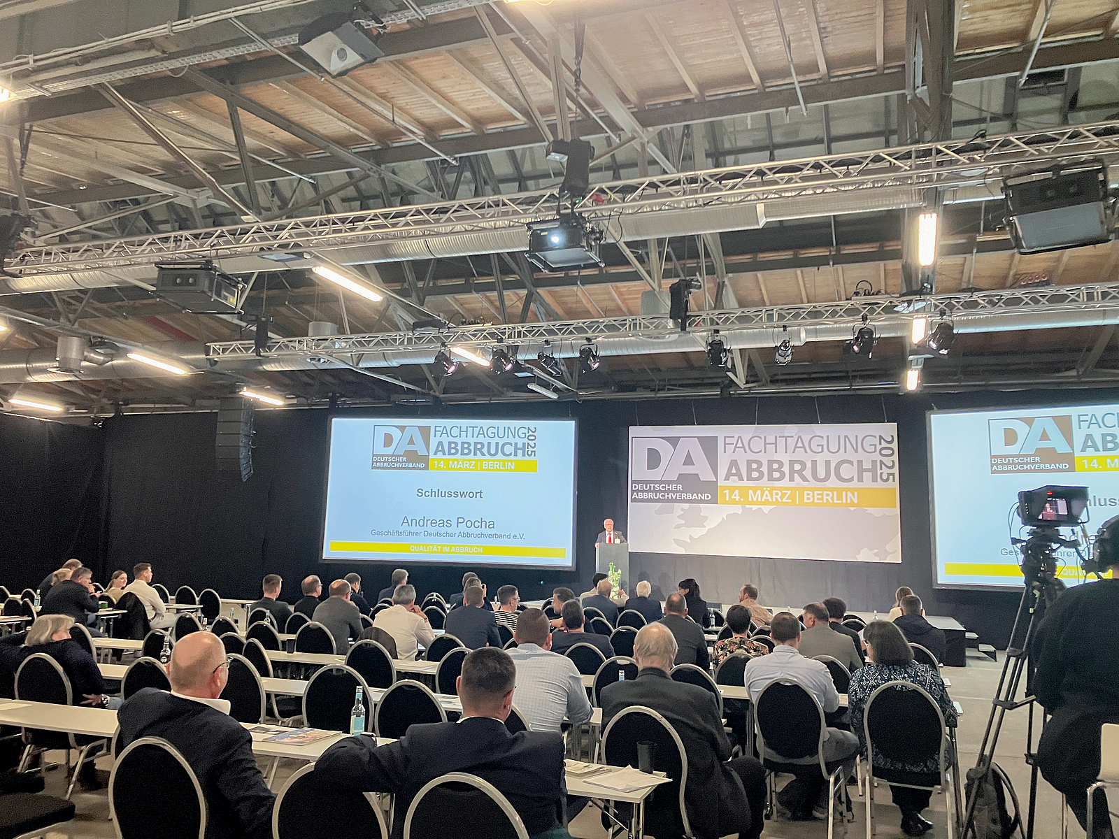 Die vom Deutschen Abbruchverband e. V. (DA) ausgerichtete „Fachtagung Abbruch“ mit dem Fokusthema „Qualität im Abbruch“ fand am 14. März 2024 in der STATION Berlin statt. Nach der Keynote von Wolfgang Grupp von der Trigema W. Grupp mit dem Titel „Qualität in Deutschland – Verantwortung und Leistung von Unternehmern in Deutschland“ gab es viele spannende Vorträge zu Asbest, zu Rückbauprojekten und zu Bauwerkssprengungen. Das Publikum konnte nach jedem Vortrag den Referierenden Fragen per App zu stellen.