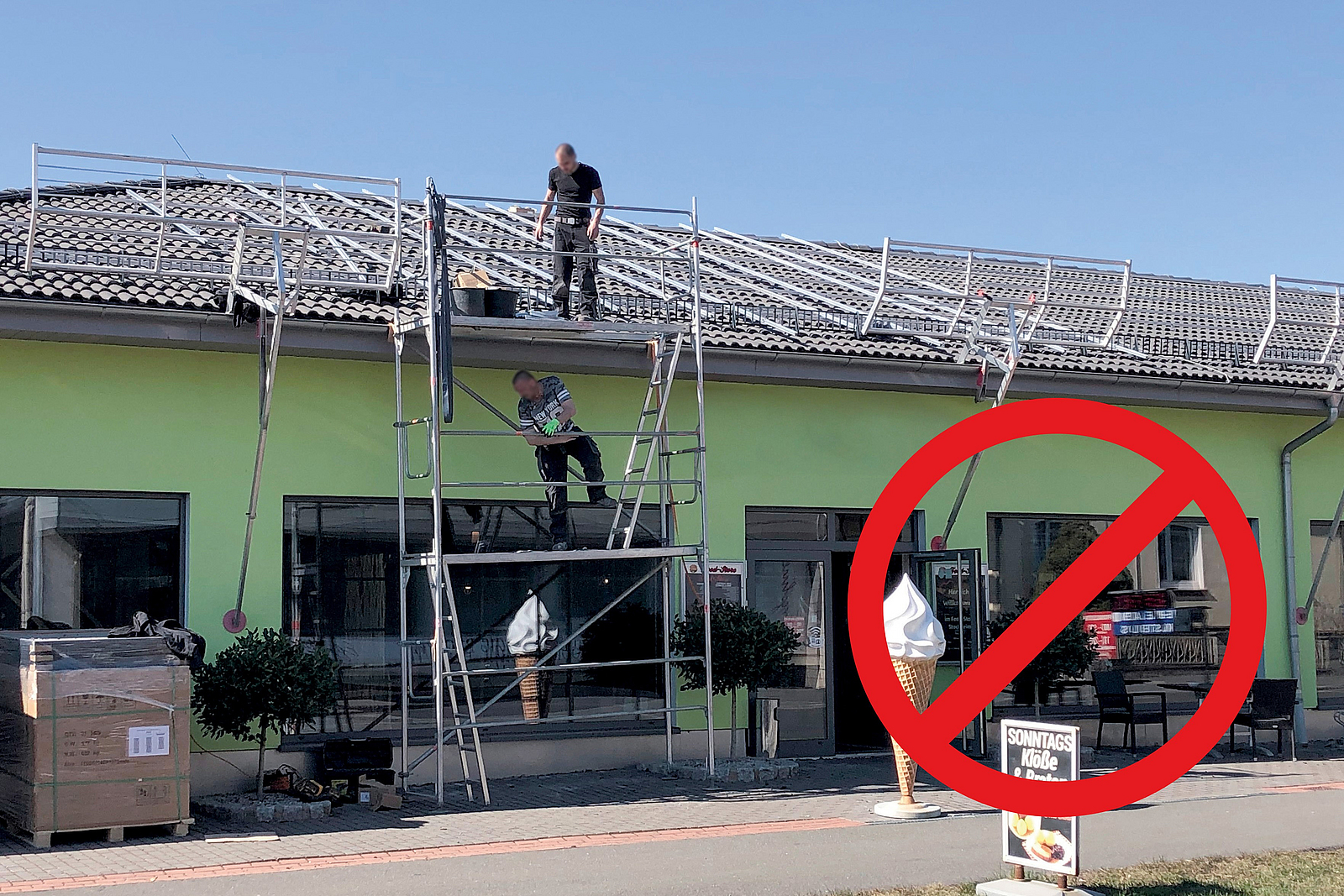 - Wie kommt man – und das Material – sicher auf das Dach? (Hinweis: Nicht mit einer Leiter!)