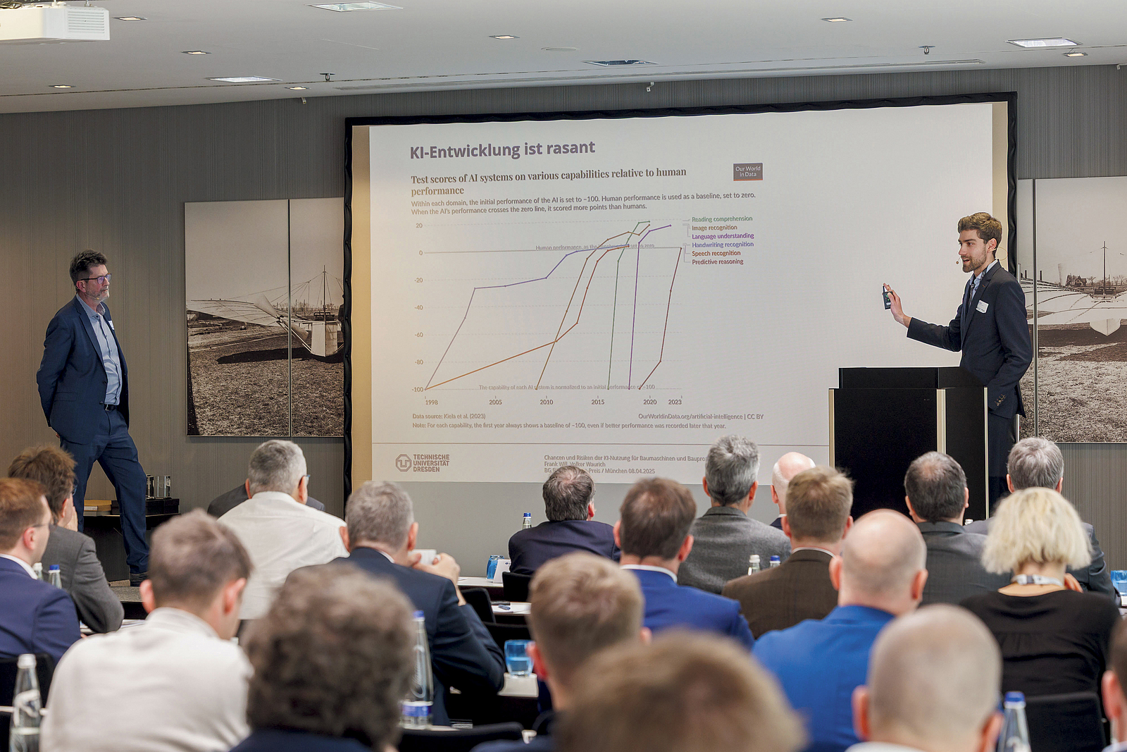 Interaktiver Austausch zum Thema „Vermeidung von Unfällen durch Erd- und Straßenbaumaschinen". Im Fokus der Diskussion standen technische Lösungen wie Assistenzsysteme in Baumaschinen, die Personenerkennung mit KI ermöglichen.