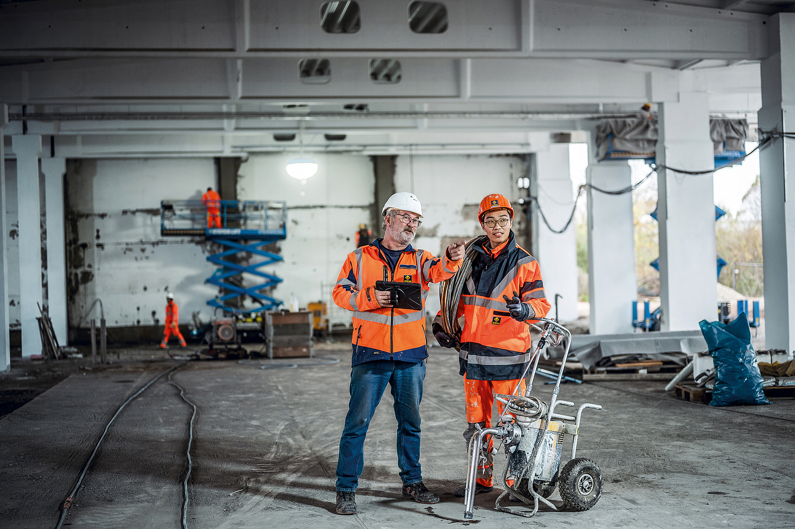 Weitere 2.600 m² Deckenfläche mit Einzelschadstellen sowie 500 m² Binderfläche wurden mittels Hochdruckwasserstrahlen vorbereitet und anschließend mit Oberflächenschutzanstrich versehen. „Eine besondere Herausforderung bei diesem Projekt stellte die aufwendige Reinigung des Schutz- und Arbeitsgerüstes nach den Spritzmörtelarbeiten dar“, so Lars Prokosch abschließend. „Zudem wurden die Abbrucharbeiten der alten, sowie die Auskofferung der neuen Bodenplatte parallel vorgenommen. Alle Arbeiten mussten optimal abgestimmt werden.“