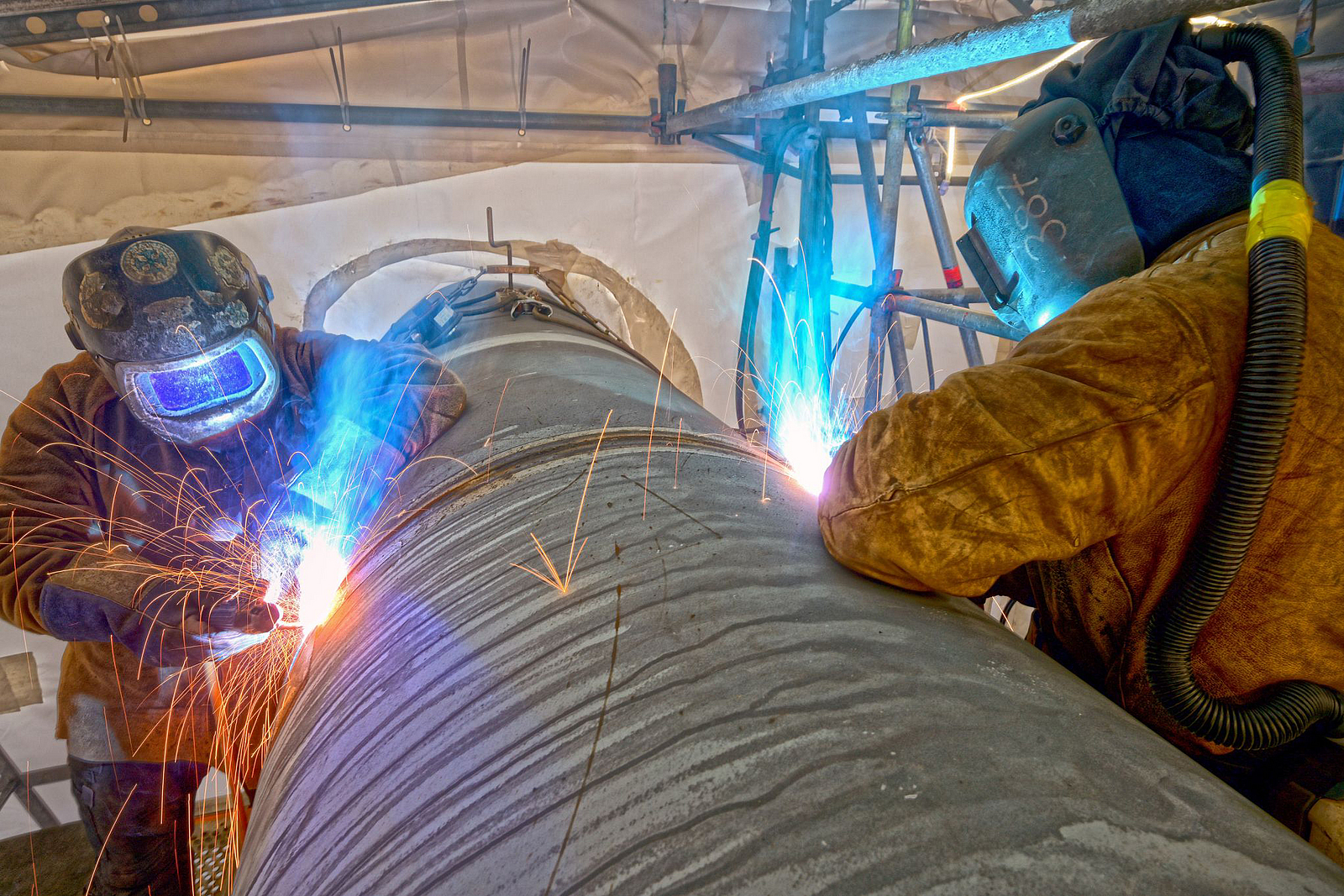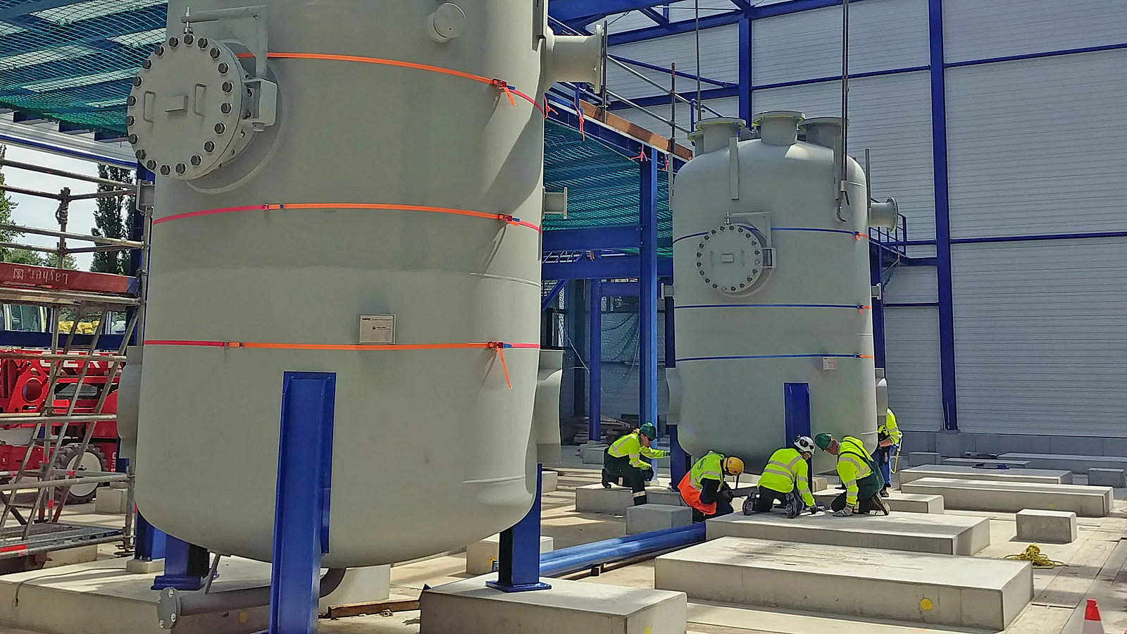 Wie hier bei der Montage von Kesseln arbeiten auf dem Werksgelände ständig externe Unternehmen. Sie müssen höchste Arbeitssicherheitsstandards erfüllen.