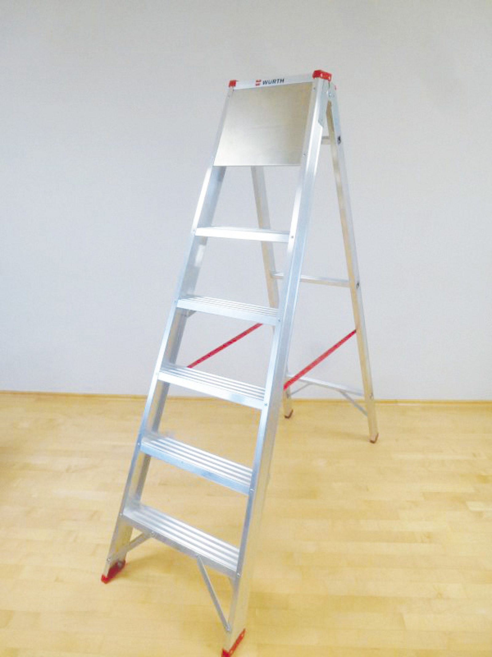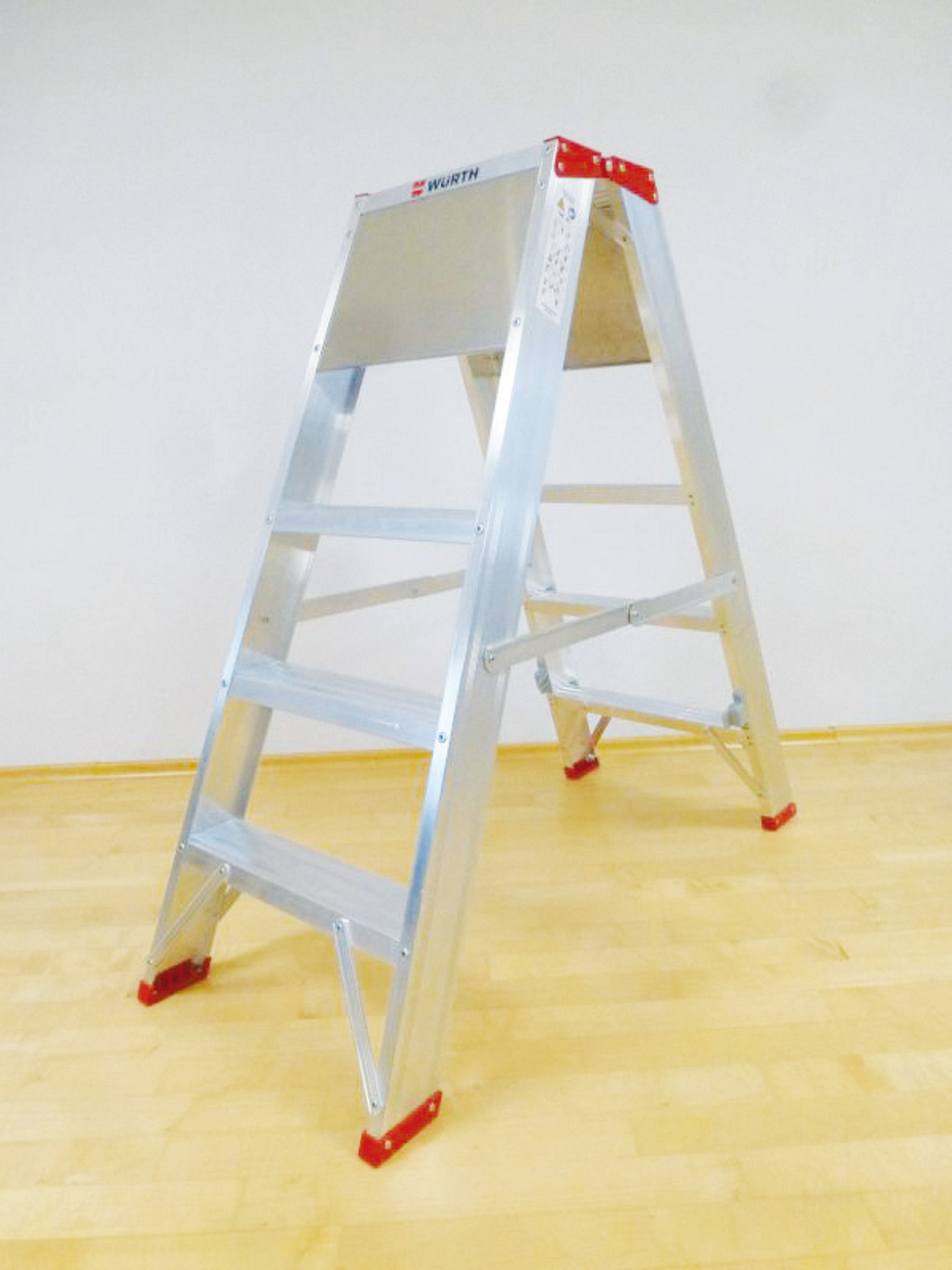 Eine weitere Fehlanwendung von Stehleitern ist das unerlaubte Laufen mit der Leiter. Auch hier ereignen sich Unfälle. Die geänderte Bauart der Stehleiter wird das Laufen mit der Leiter nicht mehr zulassen.