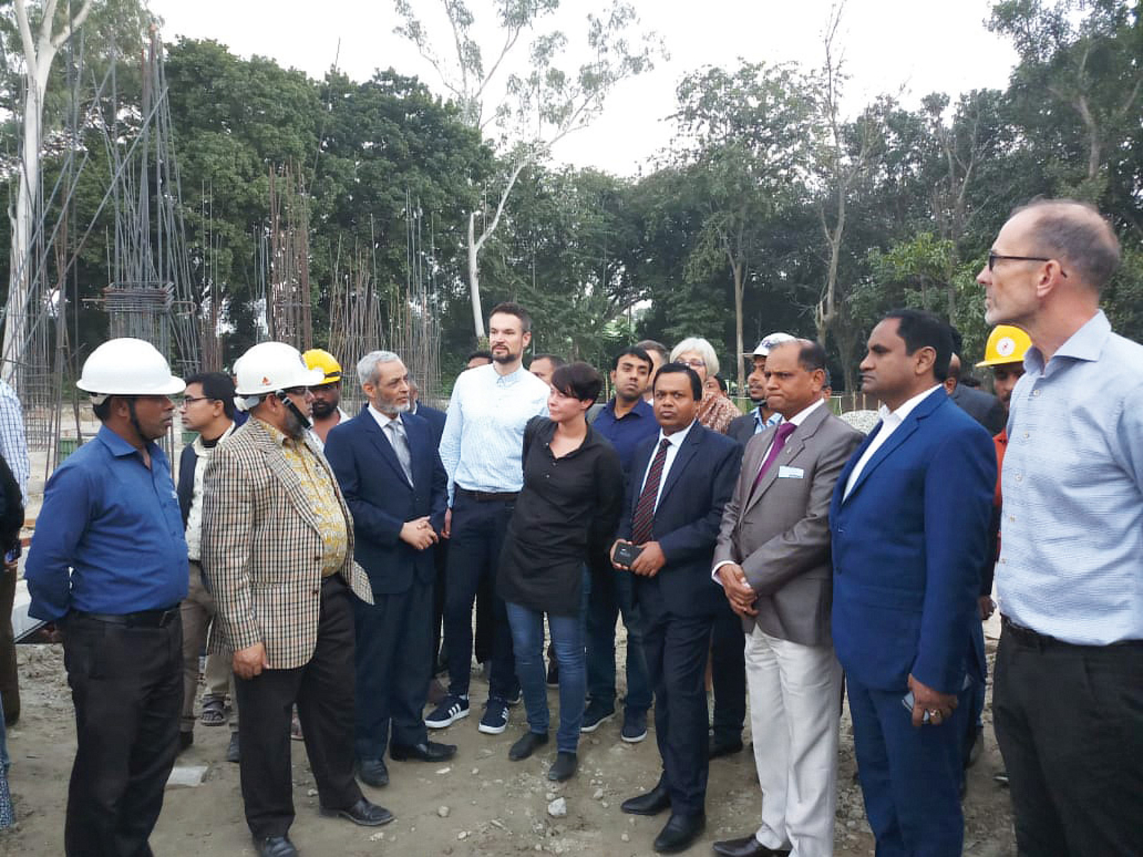 Ziel dieses Vorhabens ist es, bis Anfang 2021 schrittweise ein nationales Trainings- und Forschungszentrum aufzubauen, um erstens durch gezielte präventive Schulungen – so sind beispielsweise spezifische ergonomische Schulungen für Textilarbeiter geplant – die Arbeitsbedingungen konkret zu verbessern. Zweitens sollen Multiplikatoren in den Fabriken ganz gezielt qualifiziert werden – beispielsweise in allgemeinen Sicherheitsvorschriften für die Baubranche. Und drittens sollen perspektivisch auch Forschungsprojekte durchgeführt werden, um den Präventionsansatz in den kommenden Jahren noch stärker in den verschiedenen Industrien zu verankern – in engem Austausch mit vergleichbaren Einrichtungen in Europa und anderen asiatischen Ländern wie Sri Lanka oder Singapur. In diesem Zusammenhang fand im Herbst vergangenen Jahrs auch ein Besuch einer Delegation aus Bangladesch im Arbeitsschutzzentrum Haan statt, der von vielen anregenden Diskussionen begleitet wurde und bei dem auch einige Ansätze besprochen worden sind, die nun in Bangladesch umgesetzt werden.