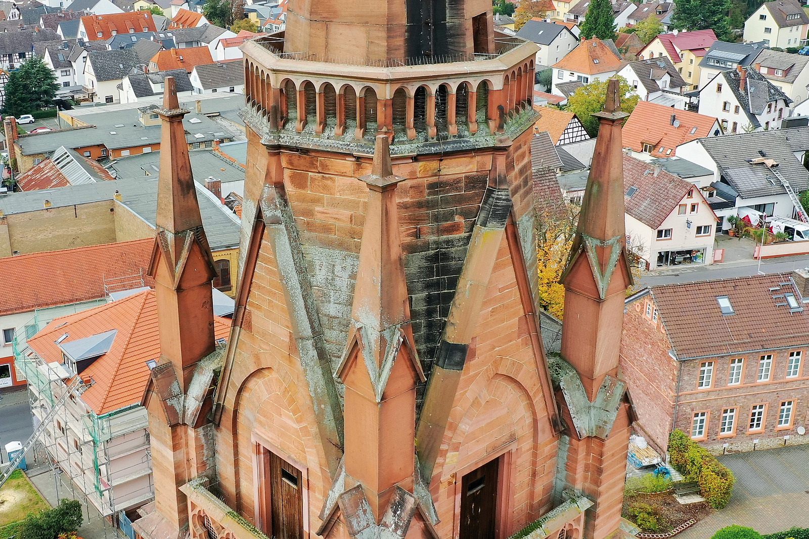 Drohneneinsatz vor der Sanierung der Stadtkirche Langen
