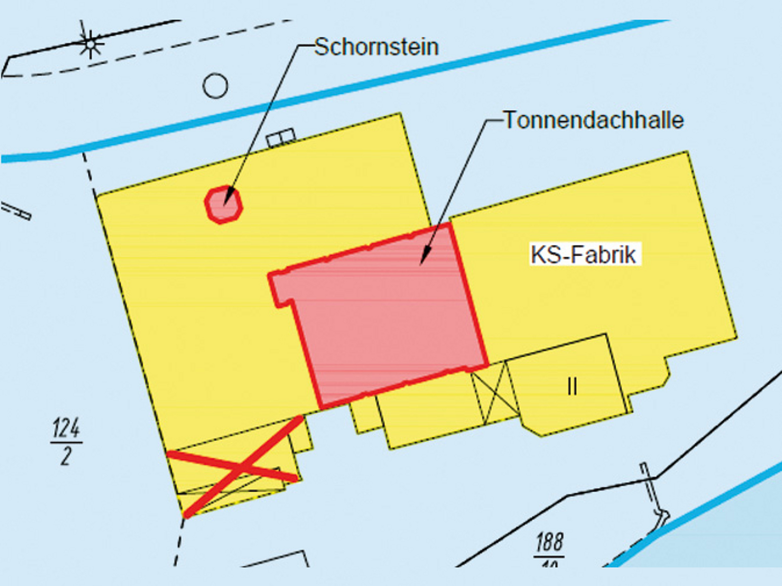 Die Kalksandsteinfabrik wurde 1904 bzw. in Teilen 1946 erbaut. In den 1960er- und 1970er-Jahren folgten Modernisierungen. Das eigentliche Fabrikgebäude umfasste insgesamt ca. 15.000 m³ Bruttorauminhalt (BRI) mit diversen bis zu 17 m hohen Silos. Im Zuge des Abbruchs mussten, wie bereits zuvor erwähnt, der denkmalgeschützte Schornstein und die sog. Pressenhalle erhalten bleiben. In der Halle wurden ursprünglich die Steinrohlinge gepresst. Die Besonderheit der Pressenhalle liegt im filigran gefertigten Bogendach aus Stahlbeton und Stahlzugbändern.