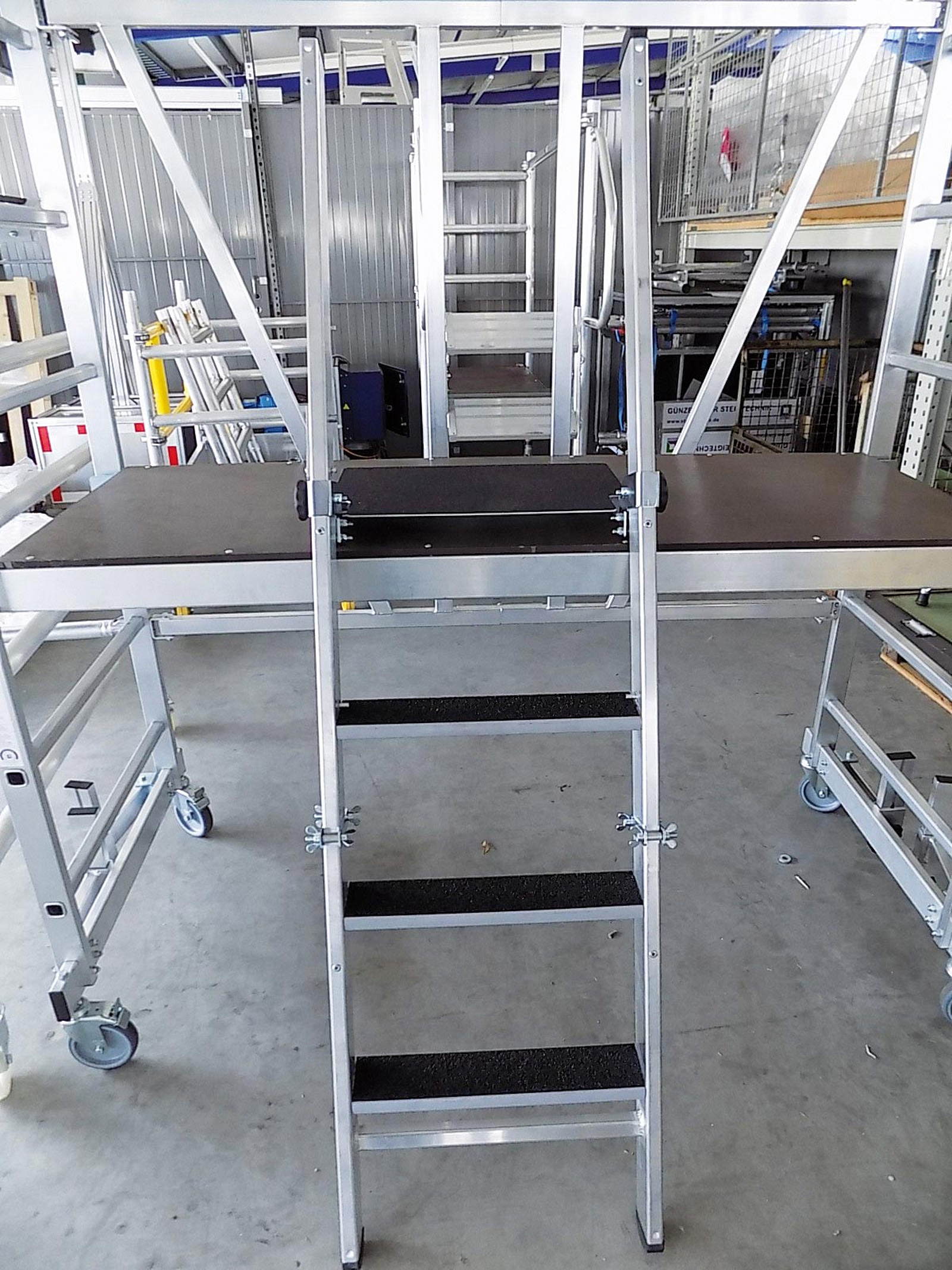 Ein erster Prototyp wurde in der firmeneigenen Werkstatt auf den Weg gebracht und in der Praxis getestet. Dort wurden Verbesserungs- und Veränderungsvorschläge durch die praktische Anwendung schnell sichtbar, und die Verbauleiter wurde in ihrer Bauart optimiert. In Modulbauweise steht nun eine Zugangslösung zur Verfügung, die einen Treppenzugang zwar nicht gleichwertig ersetzen kann, als Alternative zur Sprossenanlegeleiter aber ein deutliches Plus an Sicherheit gewährleistet.