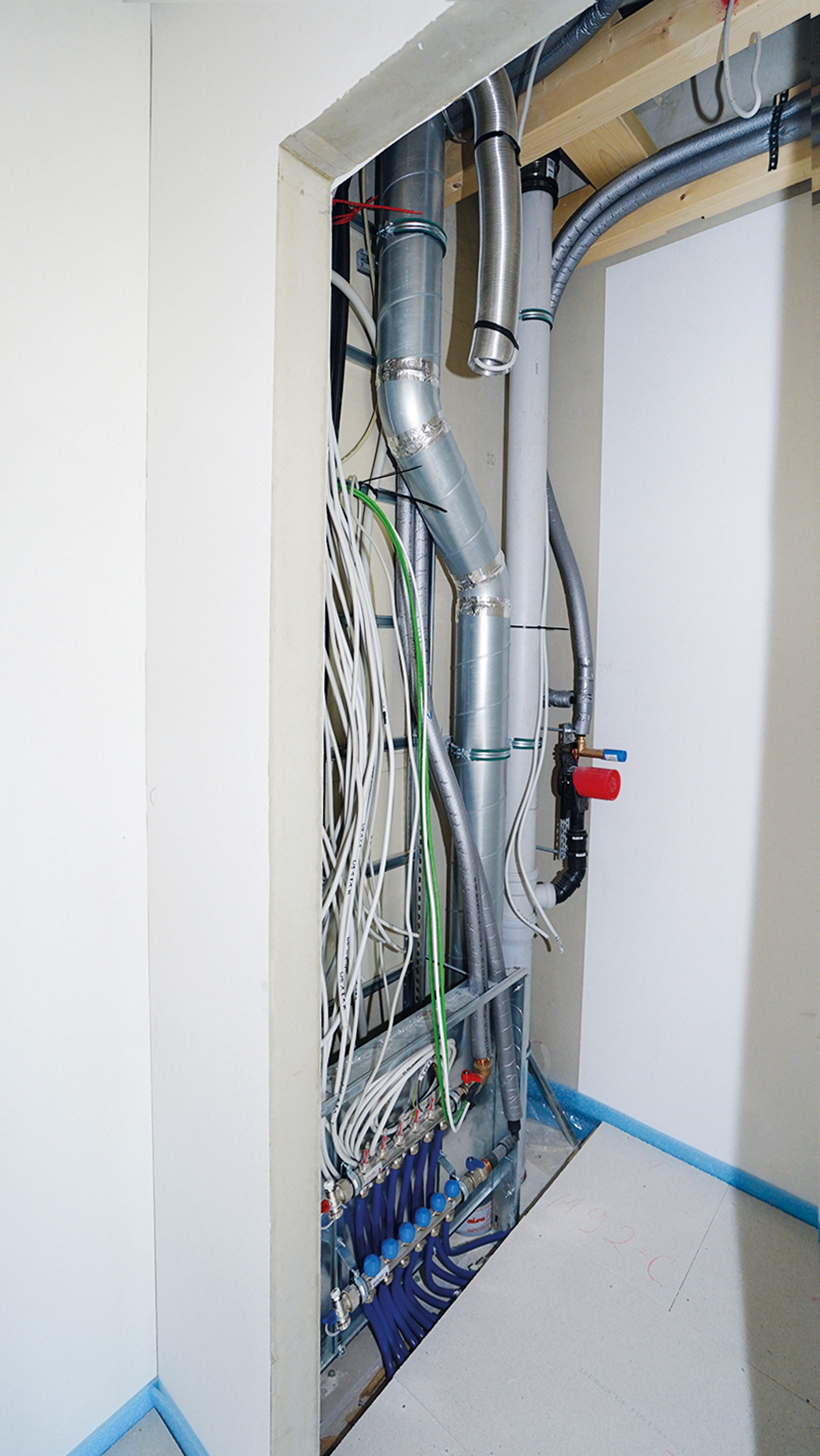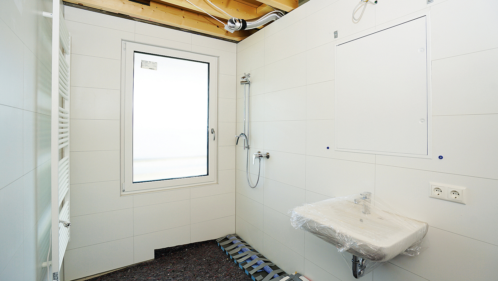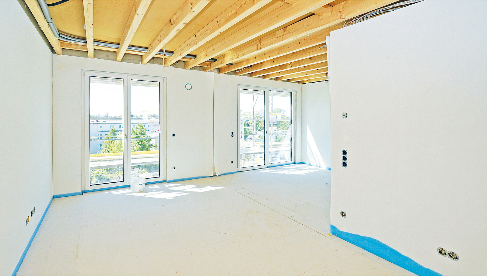 Aber neben den Herausforderungen im Modulbau waren auch andere zu meistern, wie etwa plötzliche Materialengpässe: „Für den Ausbau der Standardriegelböden der Module blieb die Lieferung nötiger Holzfaserplatten aus. Wir haben mit viel Aufwand drei verschiedene Ausweichvarianten diskutiert. Letztlich bekamen wir doch die Platten von einer anderen Baustelle, sodass der Boden so aussieht wie ursprünglich geplant. Das hält auf. Wir wollen jedoch trotz allem an den gesteckten Terminen festhalten.“ Bisher scheint dieses Vorhaben zu gelingen.