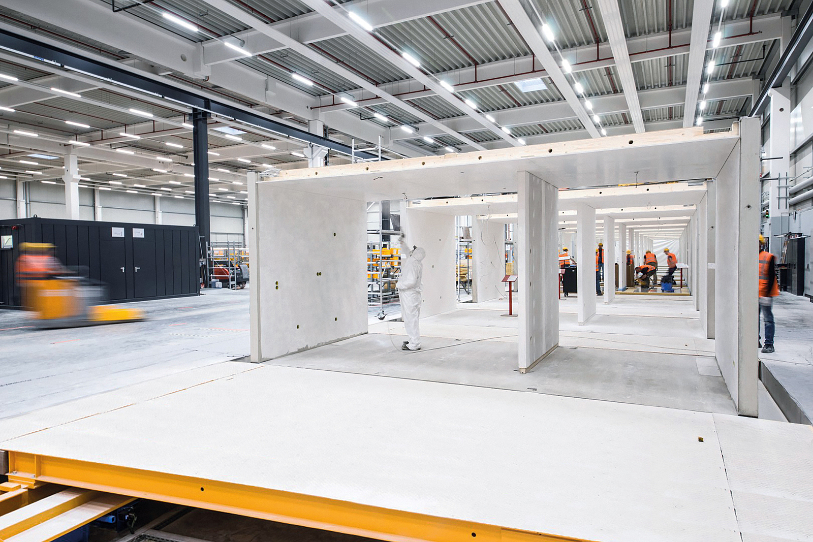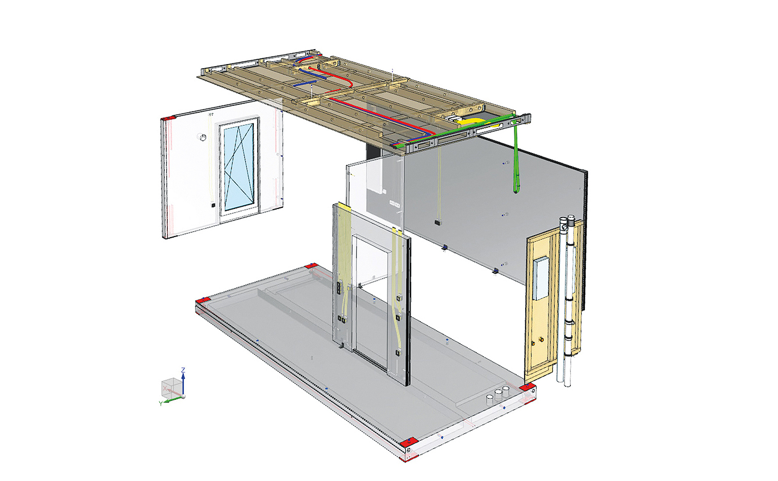 „Jedes einzelne Modul ist mit Wänden, Boden und Decke gefertigt und integriert bereits notwendige Vorinstallationen für Heizungs-, Lüftungs- und Sanitäranlagen sowie einen Teil des Bodenaufbaus“, erklärt Bauleiterin Sandra Vögele, „sodass auf der Baustelle fast nur noch montiert, gekoppelt, gedämmt und gemalert werden muss. Auch der Otis-Fahrstuhlschacht ist bereits vormontiert. Wir sind dadurch viel schneller als bei vergleichbaren Objekten und vor allem leiser, da sich viele lärmintensive Ausbauarbeiten auf der Baustelle erübrigen.“