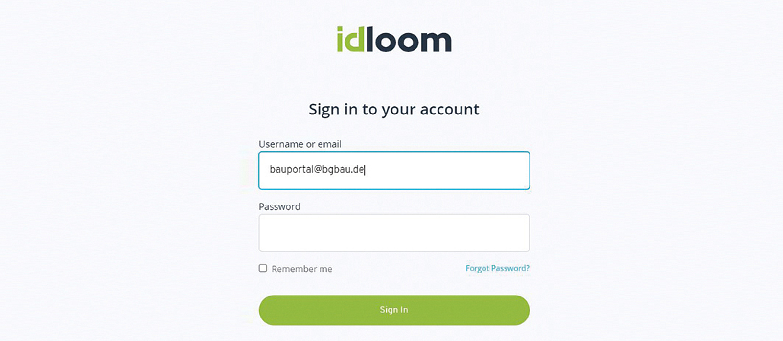 Nachdem ein Passwort eingerichtet wurde, ist die Anmeldung bei idloom über E-Mail-Adresse und Passwort möglich.
