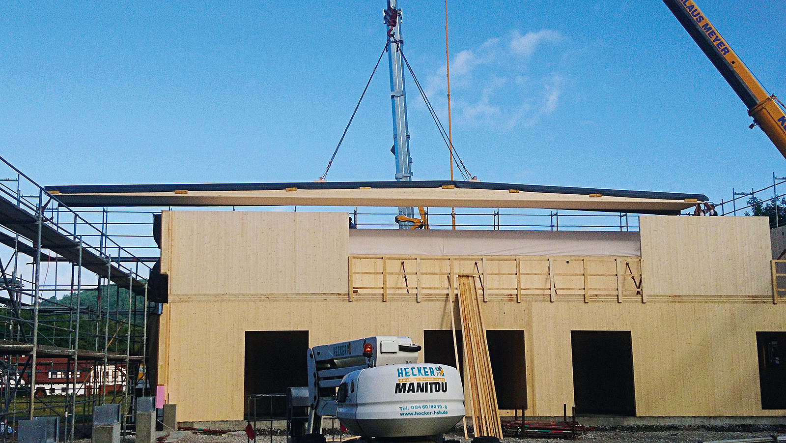 Durch die Vormontage der Holzbau-Elemente in der Halle konnten rund 800 Stunden auf der Baustelle gespart werden.