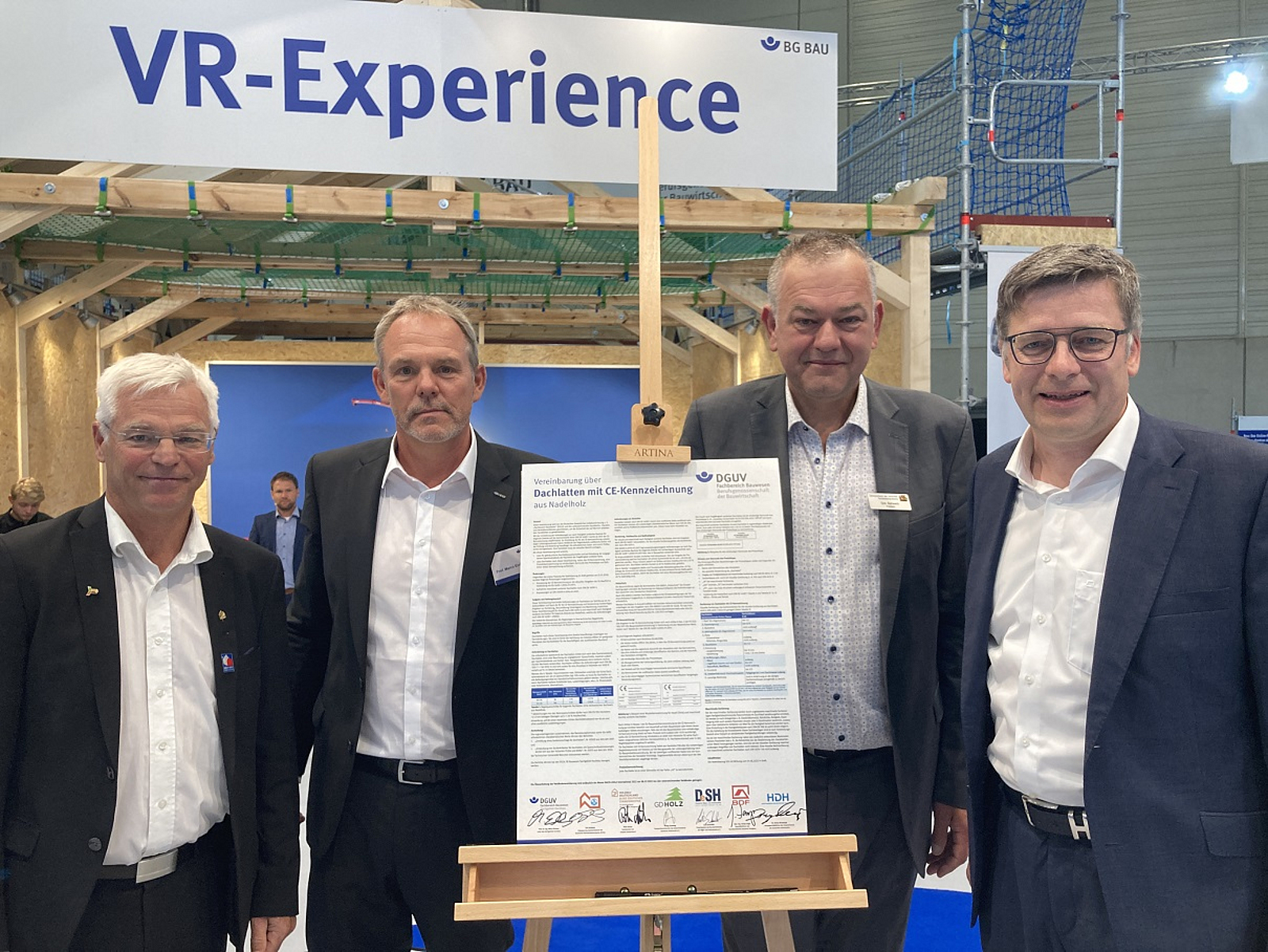 Auf der Messe DACH+HOLZ in Köln haben Handwerks-, Handels- und Herstellerverbände sowie das Sachgebiet Hochbau des Fachbereichs Bauwesen der DGUV die Neufassung der „Vereinbarung über Dachlatten mit CE-Kennzeichnung aus Nadelholz“ unterzeichnet. Sie trat am 1. August 2022 in Kraft und ersetzt die Dachlatten-Vereinbarung aus dem Jahr 2015.