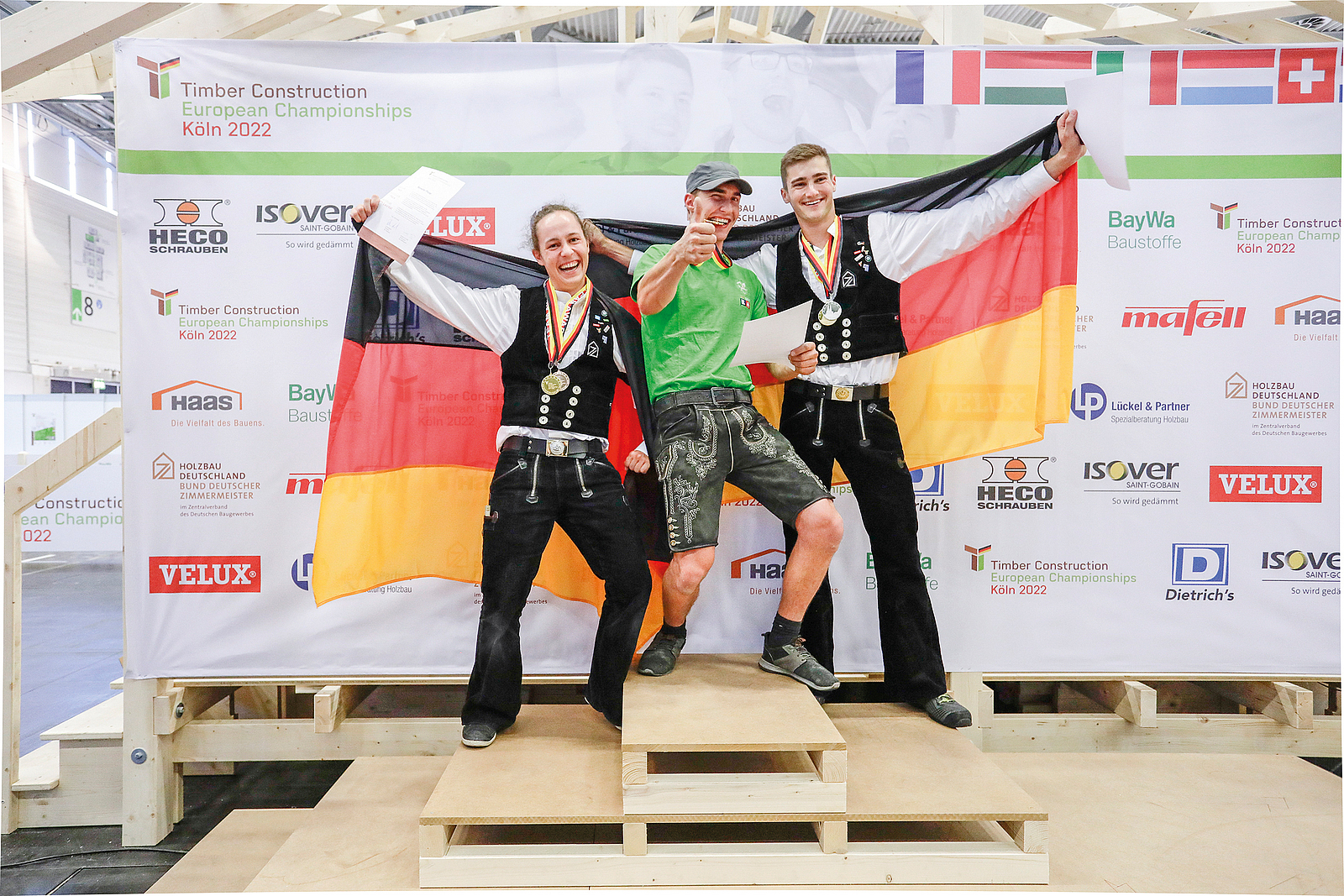 Zimmerer-Europameister 2022 in der Einzelwertung wurde Marcel Bolego (22) aus Südtirol/Italien, Silber ging an Philipp Kaiser (23) aus Baden-Württemberg und Bronze wurde übergeben an Benedikt Pfister (22) aus Bayern. In der Mannschaftswertung lag Deutschland auf Platz eins, gefolgt von Frankreich und der Schweiz.