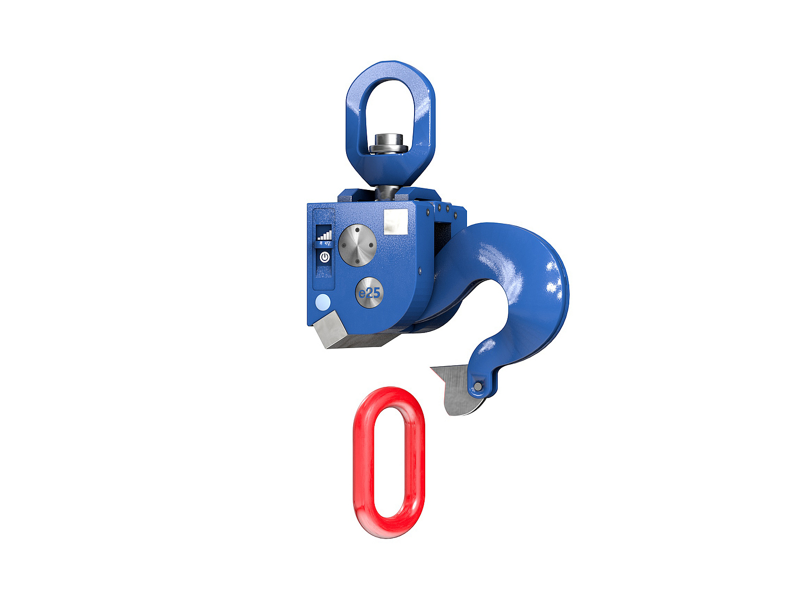 Der Automatikhaken ermöglicht das sichere Abschlagen von Anschlagmitteln ohne Absturzgefahr. Beschäftigte bleiben am Boden und führen die Arbeiten in der Höhe mit einem ferngesteuerten Automatiksystem durch. Eine spezielle Sicherung sorgt dafür, dass der Automatikhaken nicht unter Last geöffnet werden kann.
