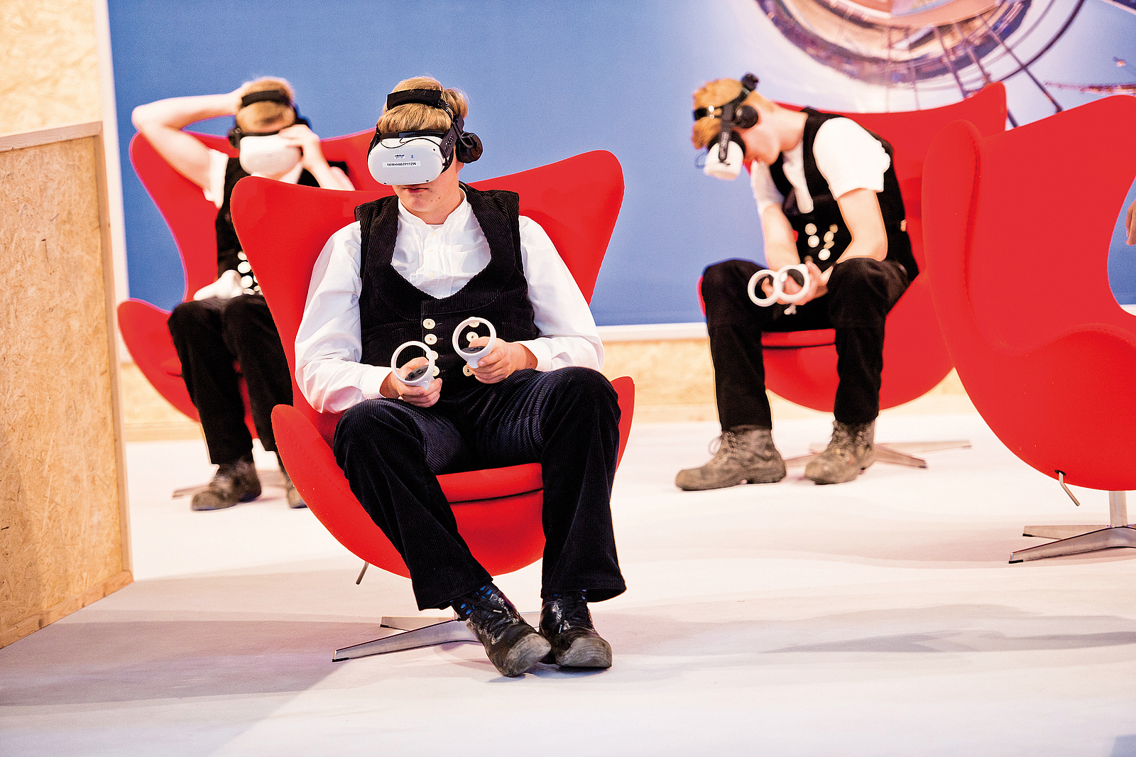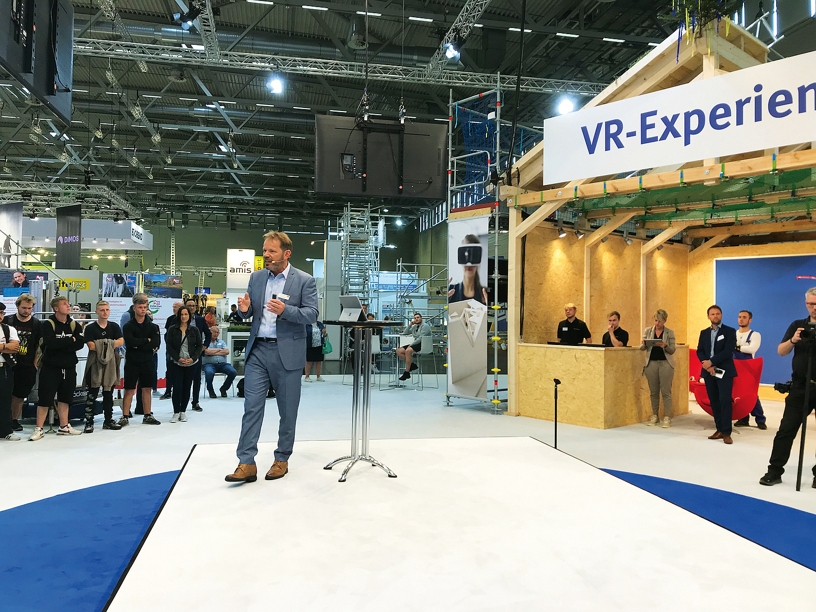 Dank VR-Brille konnten Standbesucherinnen und -besucher außerdem in eine virtuelle 360°-Umgebung eintauchen und die Vorteile der Vormontage dort eigenständig und interaktiv erkunden.