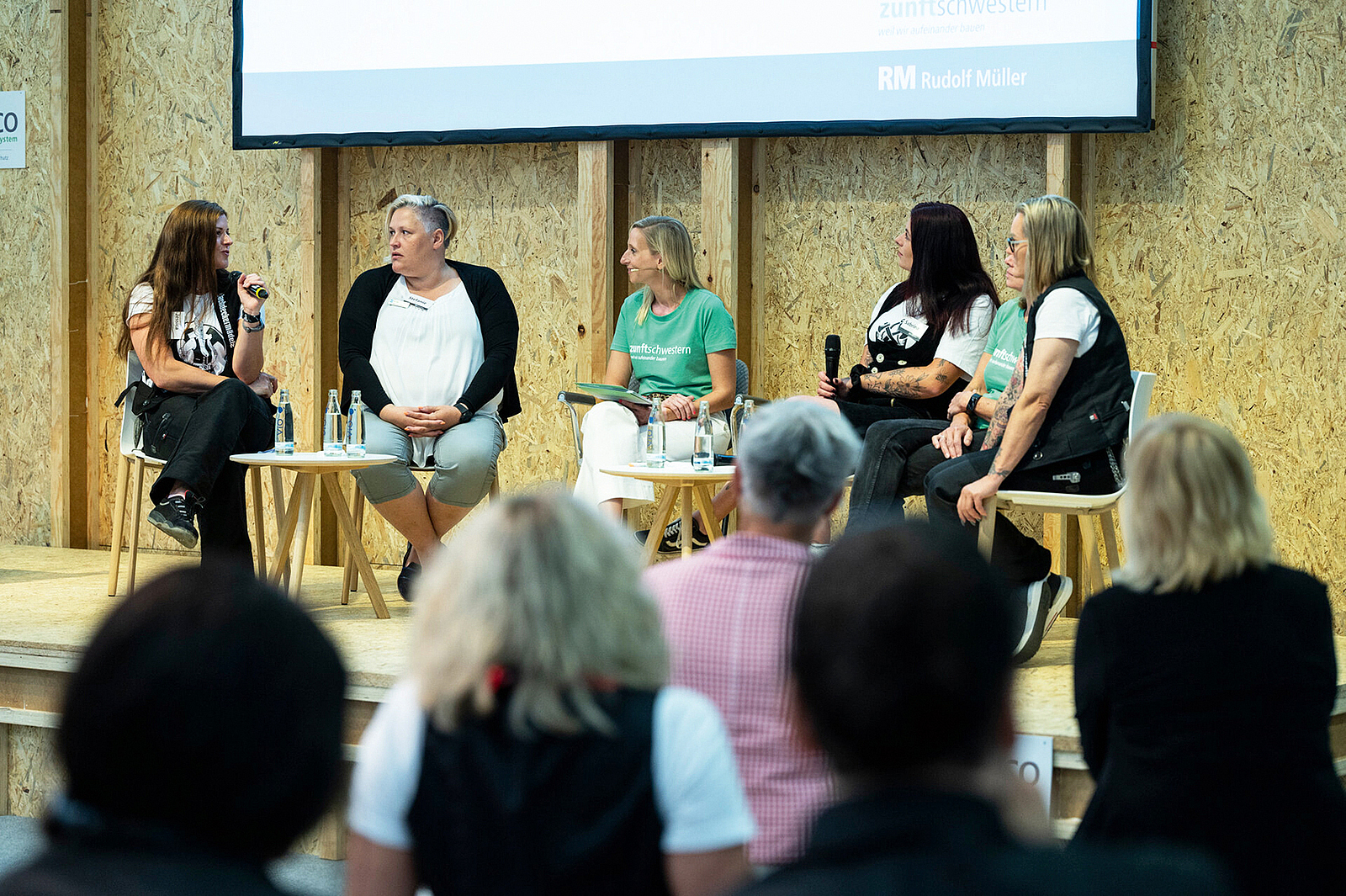 So ging es am ersten Messetag um die Förderung und die Ansprache des Nachwuchses. Wie viele andere Branchen hat auch das Dachdecker- und Zimmererhandwerk Nachwuchsprobleme. Influencerinnen und Influencer können mit ihren Beiträgen in den sozialen Medien die Sicht auf die Arbeit in diesen Gewerken verändern und die Brücke von jungen Menschen zu traditionellen Handwerksbetrieben schlagen. Junge Menschen heißt auch in diesem Handwerk zunehmend mehr junge Frauen. Um weibliche Erfolgsstorys im Dachdecker- und Zimmererhandwerk ging es am zweiten Messetag. In einer Diskussionsrunde waren sich die teilnehmenden Dachdeckerinnen einig, dass Frauen auf dem Bau dazugehören und das Gleiche wie Männer leisten können. Einhellig wünschten sie sich, dass in zehn Jahren das Thema „Frauen im Handwerk“ nicht mehr Titel einer Diskussionsrunde sein sollte.