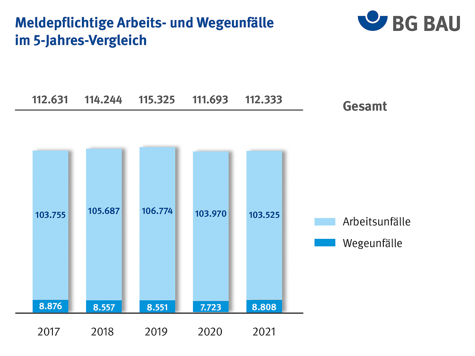 Meldepflichtige Arbeits- und Wegeunfälle im 5-Jahres-Vergleich