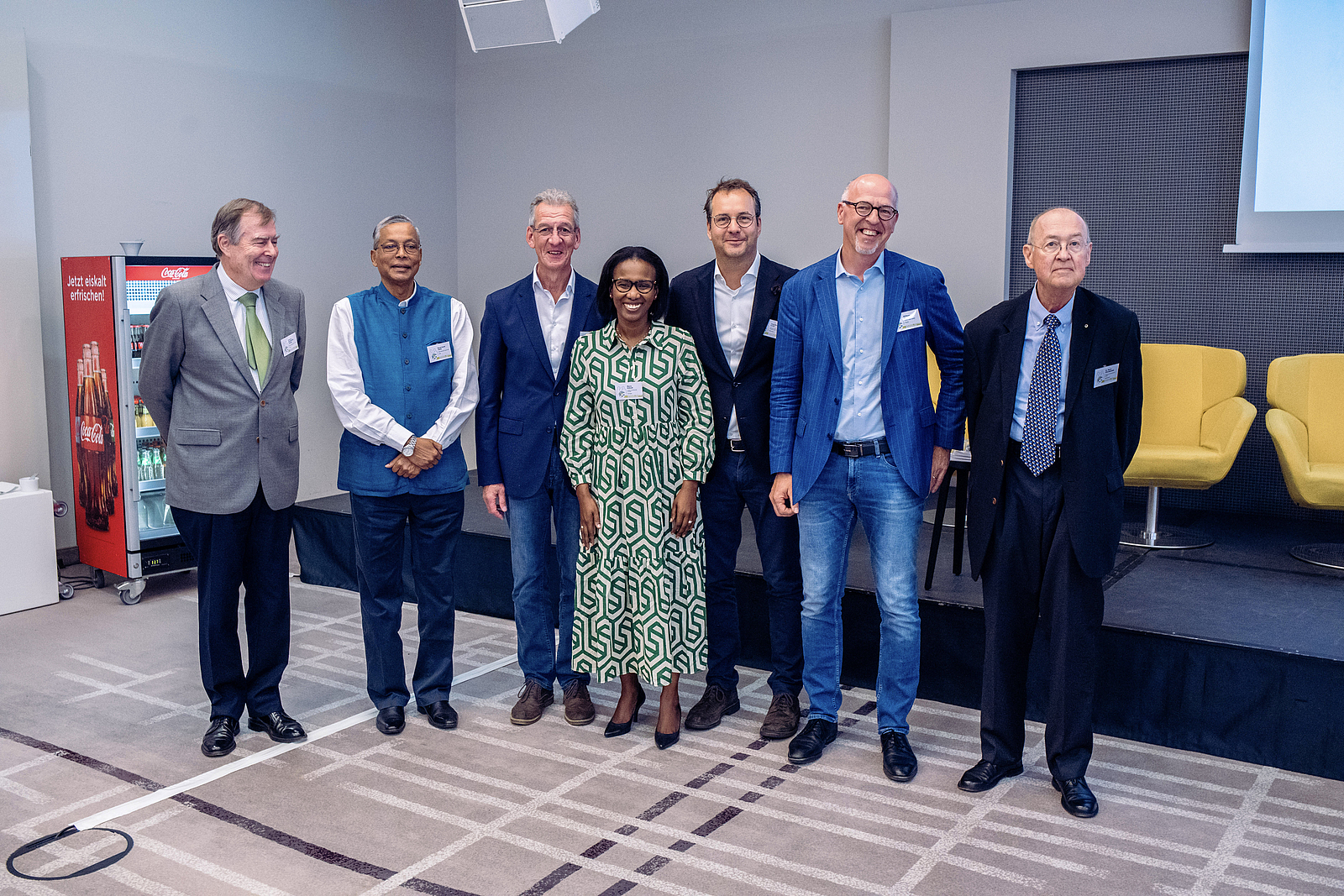 Breakout Session "Innovation und neue Technologien" mit (v. l. n. r.): Dr. Knut Ringen, Takashi Kawata, Marcos Hill, Bernd Merz, Stéphanie Bigeon-Bienvenu, Cristian Amaya Gomez und Prof. Dr. Pieter van Gelder (Moderator)